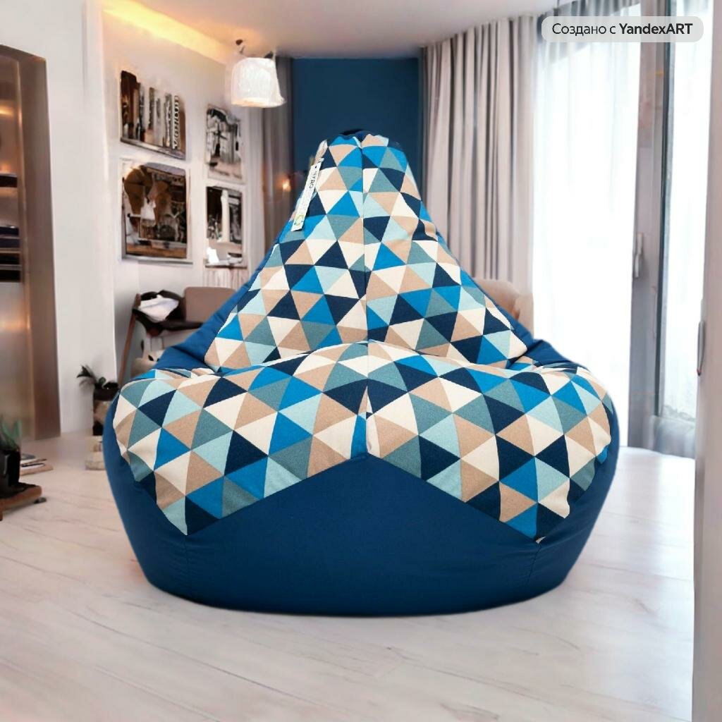 Кресло-мешок груша Ромбус синий 150х110 размер XXXXL, Чудо Кресло, Хлопок Оксфорд, ручка, люверс, молния, пуф интересное: