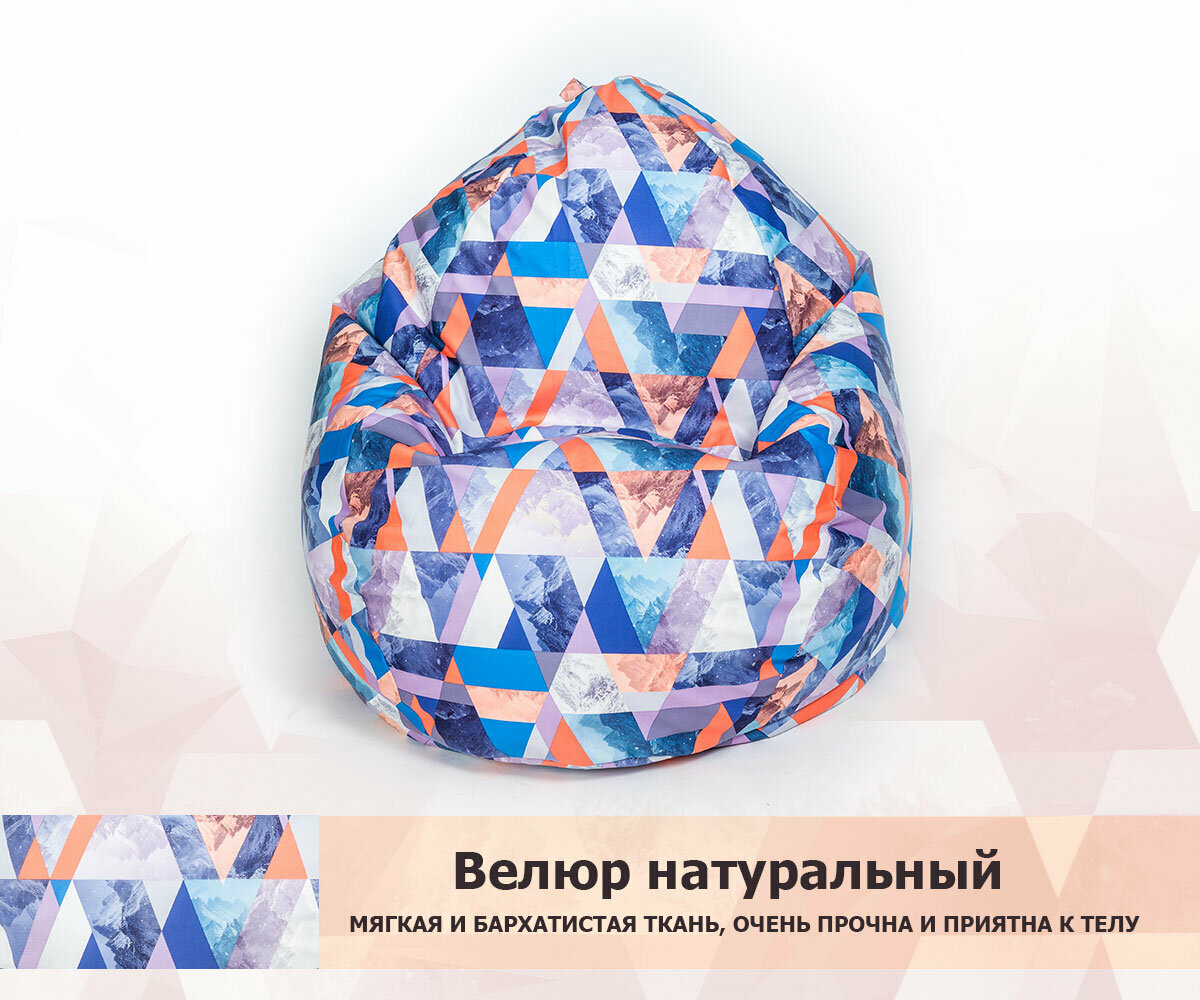 Кресло-мешок игровое WOWPUFF "МАКСИ" XXXXXL велюр принт сноу деним. съемный чехол интересное: