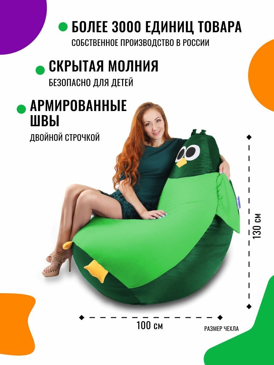 Кресло-мешок PUFON , сова , размер 3XL , зеленый/темно-зеленый интересное: