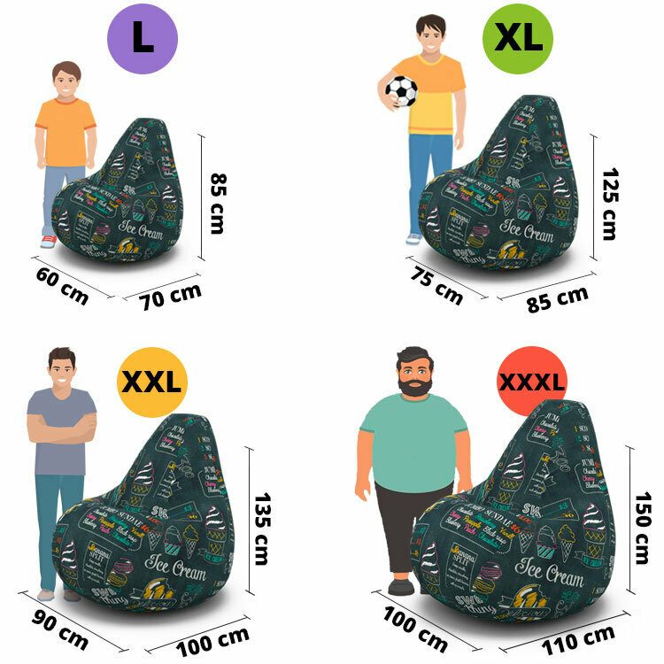 Купить Кресло-мешок Пуффбери «Груша», размер XXXL средний, Жаккард Айскрим