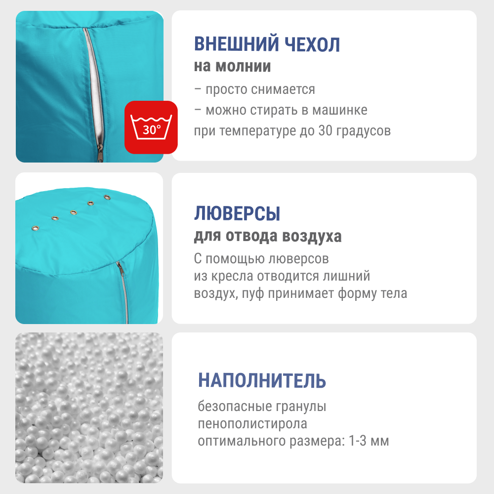 Кресло мешок Bean Joy Люкс, размер XXХХL, оксфорд, бирюза интересное: