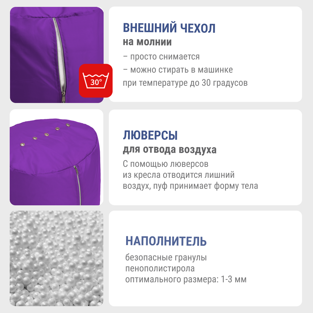 Кресло мешок Bean Joy Люкс, размер XXХХL, оксфорд, фиолетовый интересное: