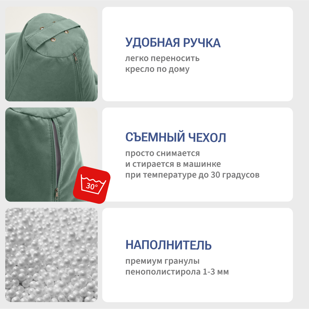 СохранитьКресло мешок Bean Joy кресло груша, размер XХХХL, мебельный велюр, пыльный ментол интересное: