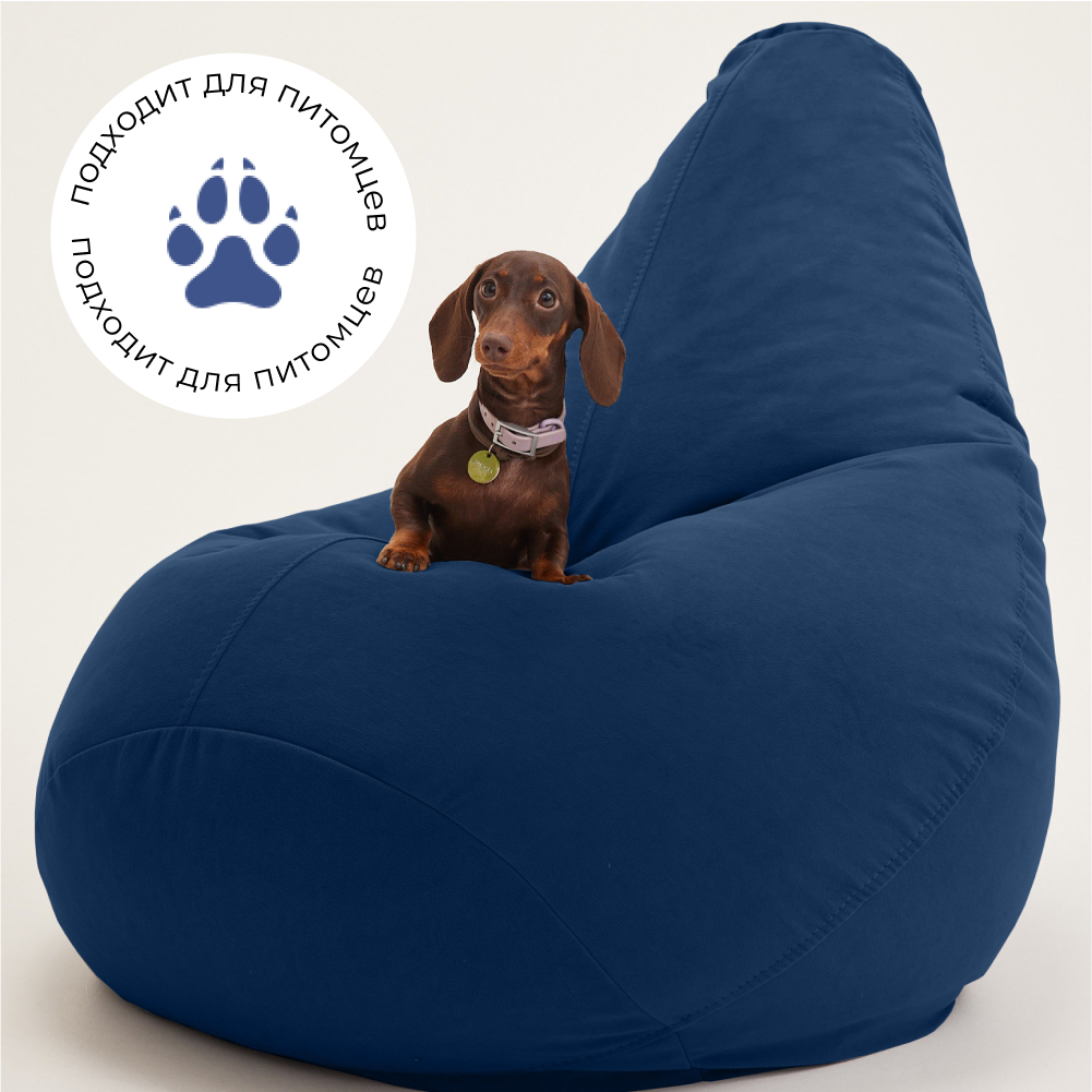 Кресло мешок Bean Joy кресло груша, размер ХXXXL, мебельный велюр, темно-синий