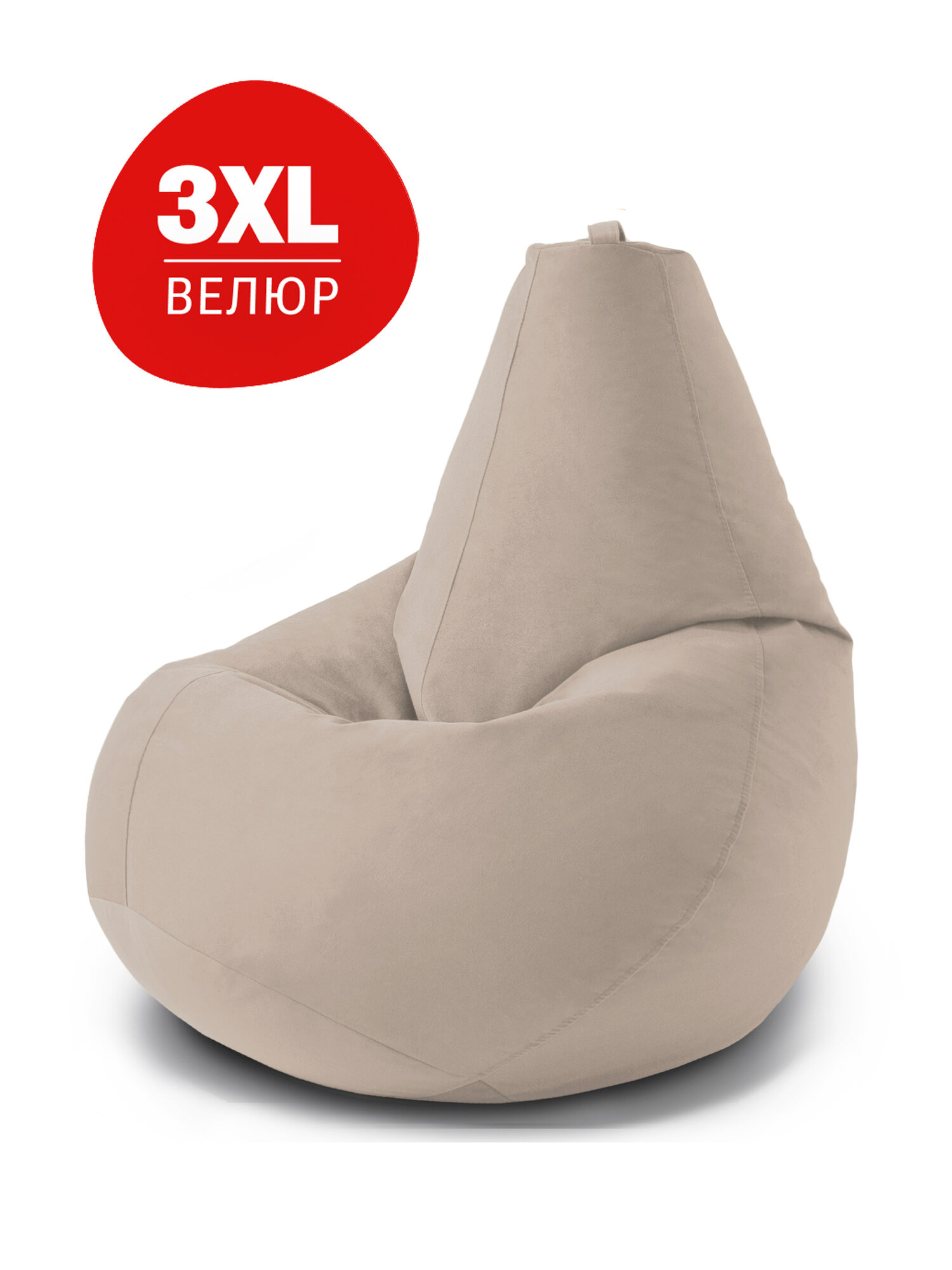 Кресло мешок Bean Joy кресло груша, размер ХXXXL, мебельный велюр, бежевый