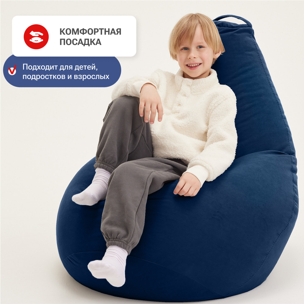 Кресло мешок Bean Joy кресло груша, размер ХXXL, мебельный велюр, темно-синий