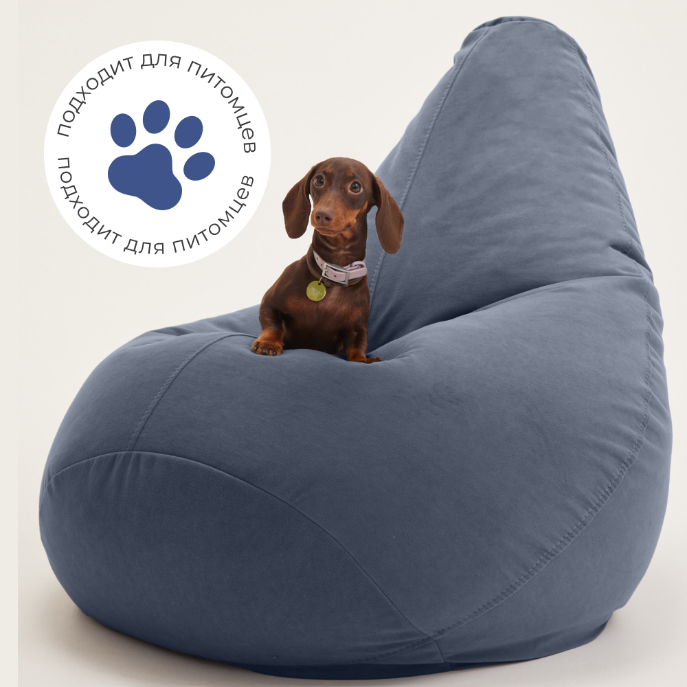 Кресло мешок Bean Joy кресло груша, размер ХXXXL, мебельный велюр, темно-синий