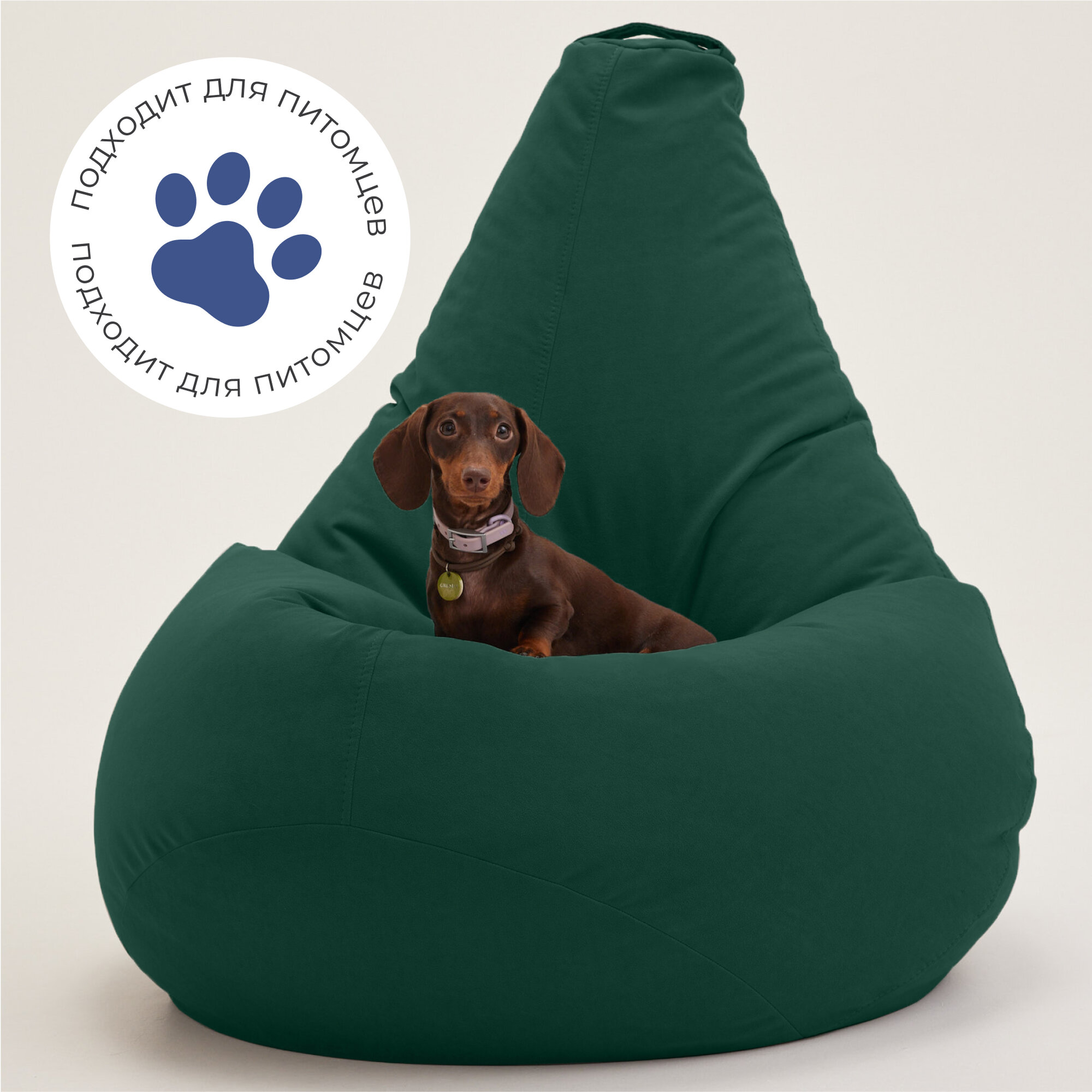 Кресло мешок Bean Joy кресло груша, размер ХXXXL, мебельный велюр, темный изумруд