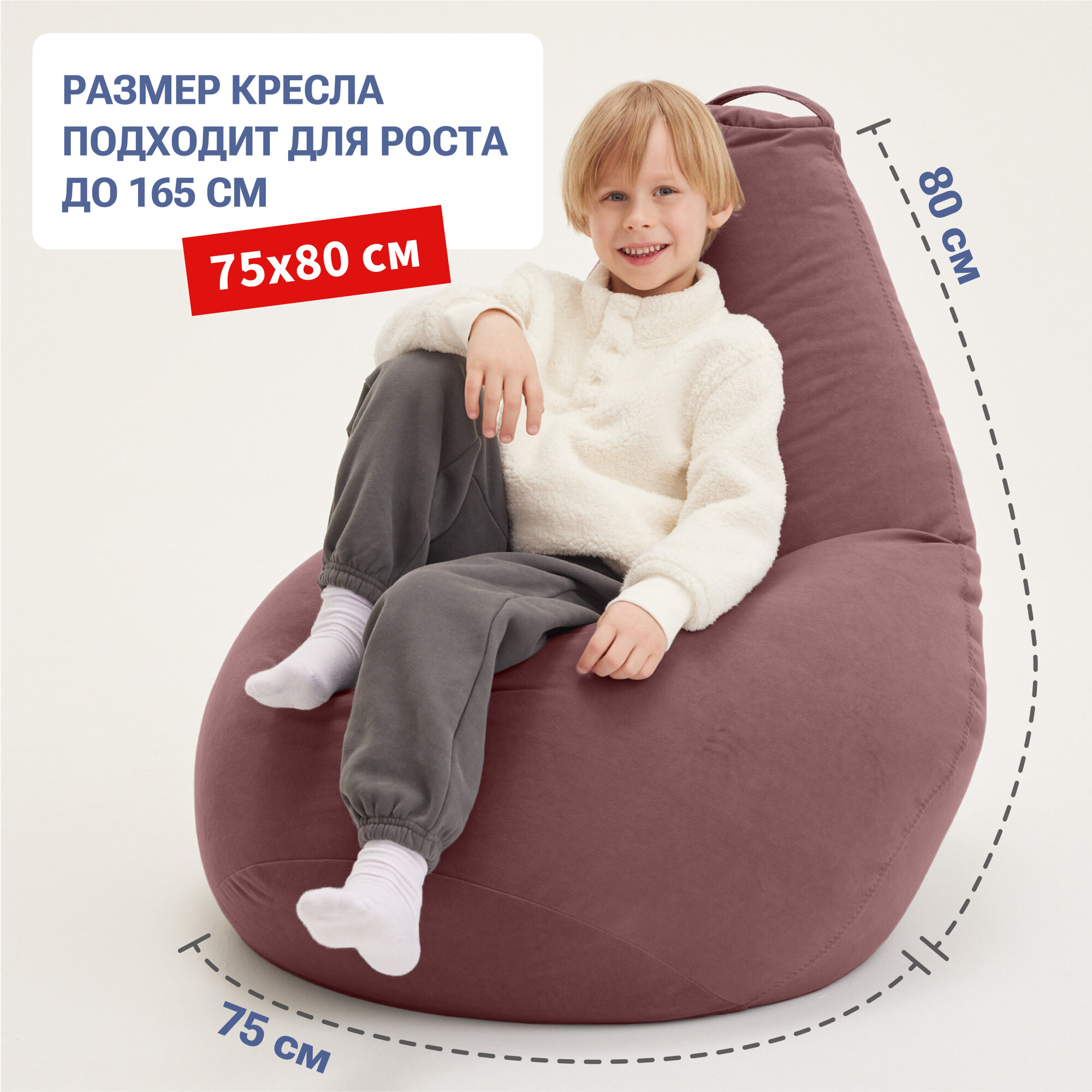 Кресло мешок Bean Joy кресло груша, размер ХXXL, мебельный велюр, сталь