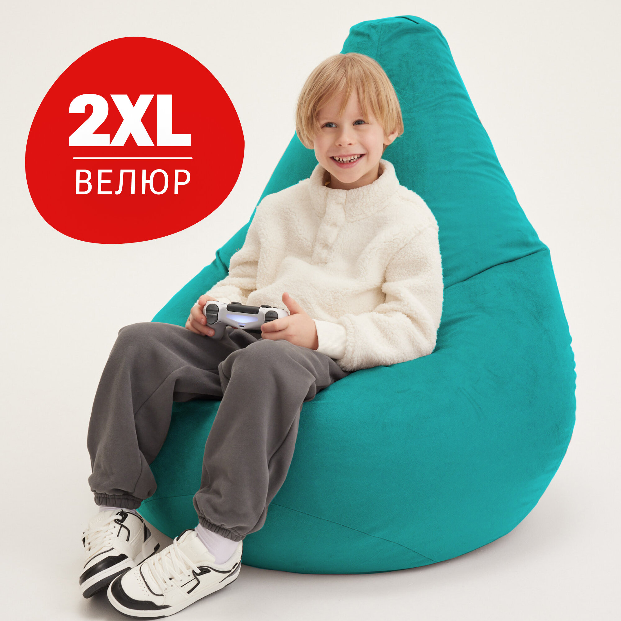 Кресло мешок Bean Joy кресло груша, размер ХXXXL, мебельный велюр, глубокая бирюза