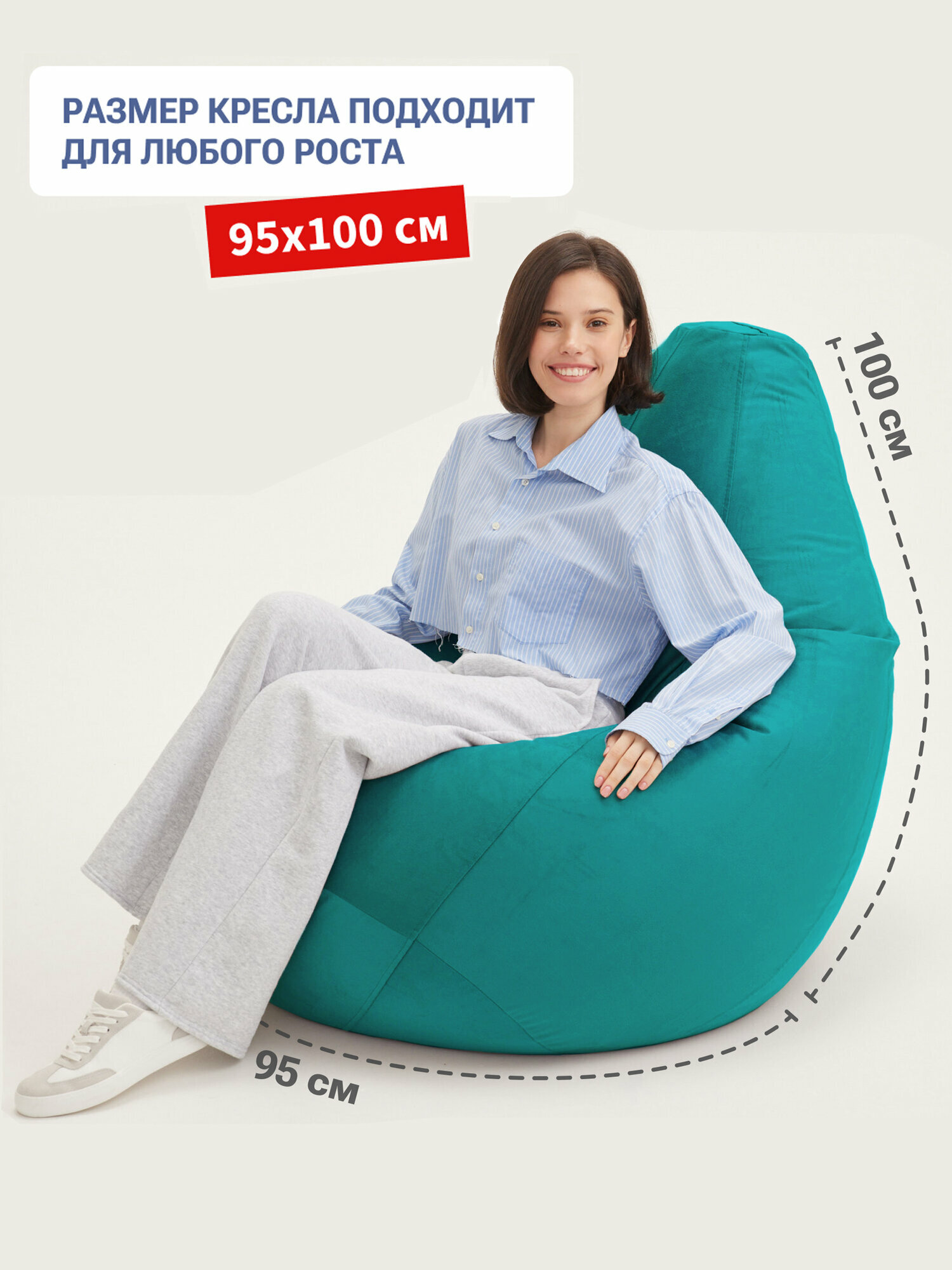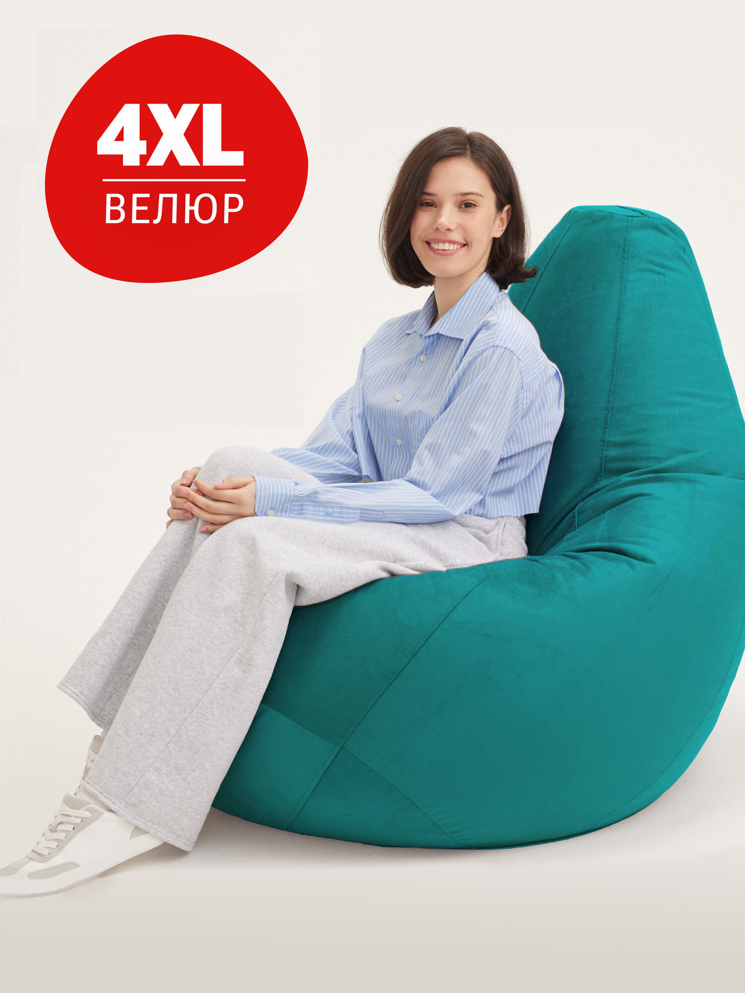 Кресло мешок Bean Joy кресло груша, размер ХXXXL, мебельный велюр, глубокая бирюза