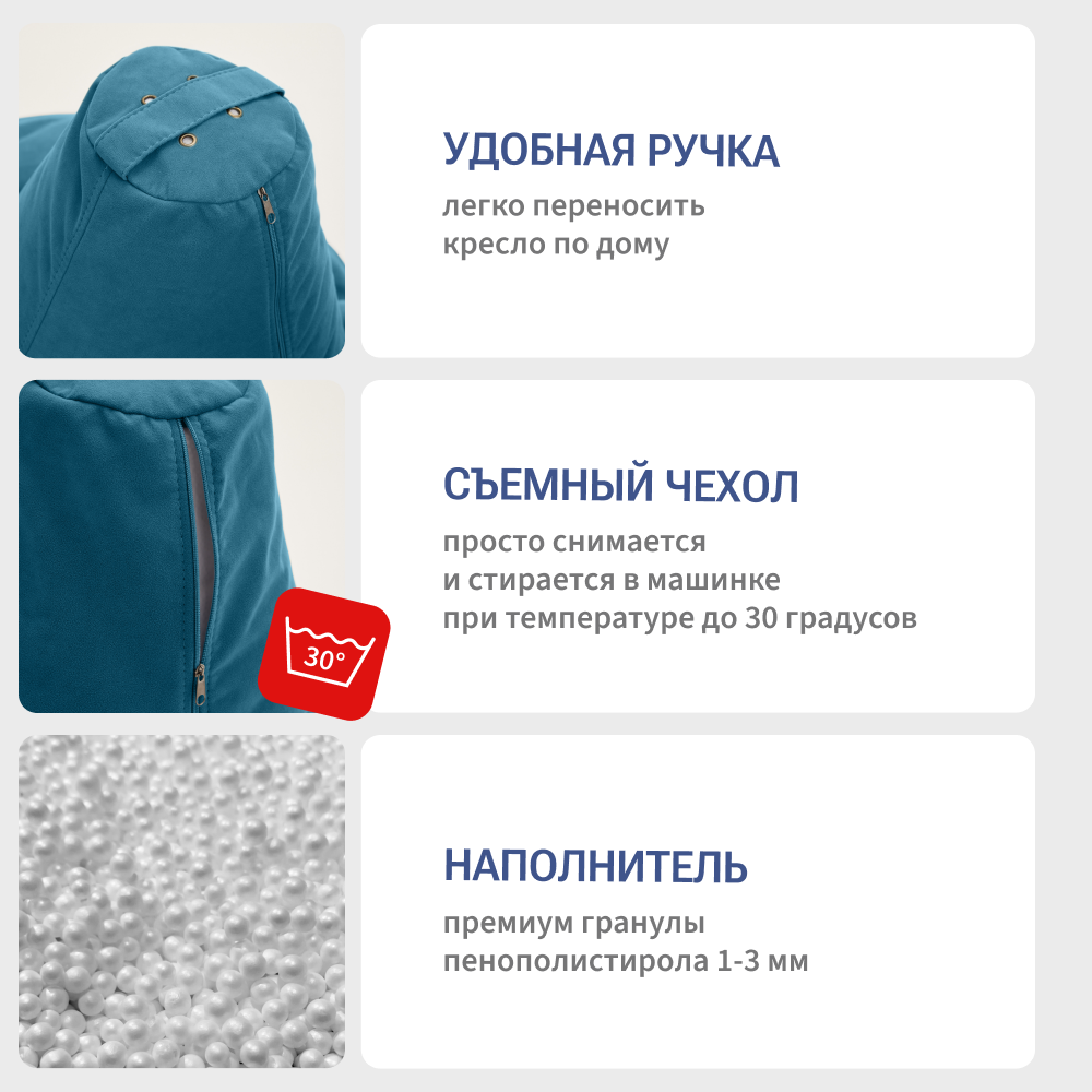 Кресло мешок Bean Joy кресло груша, размер ХXXXL, мебельный велюр, глубокая бирюза