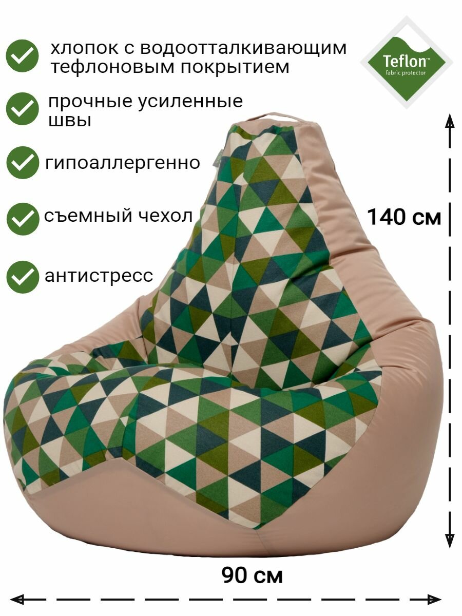 Кресло мешок Груша Кивис бежевый 150х110, размер XXXXL, Чудо Кресло, ручка, люверс, молния интересное:
