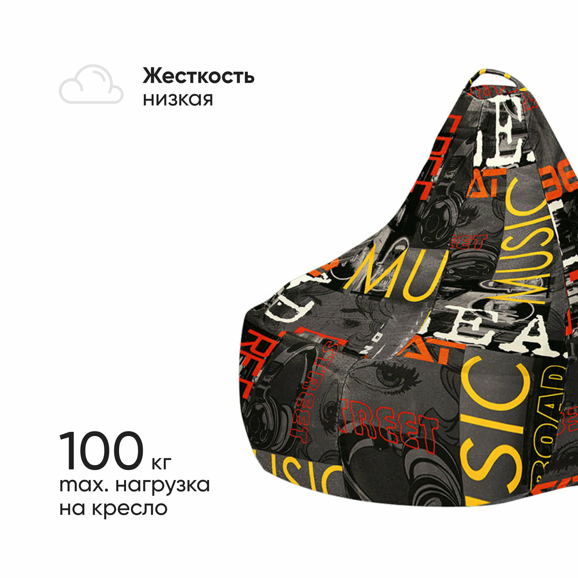 Кресло-мешок Купер XL Серый граффити, Люкс интересное:
