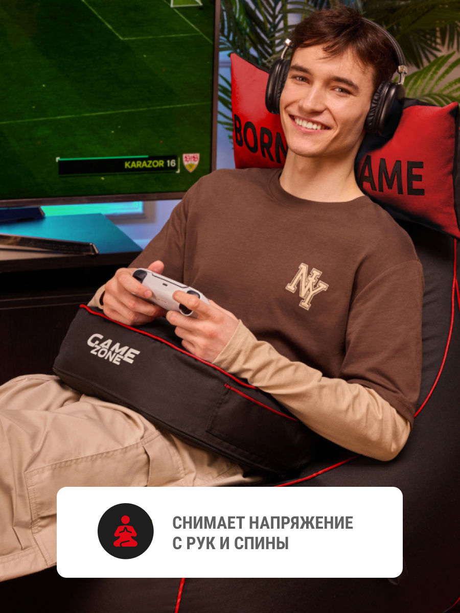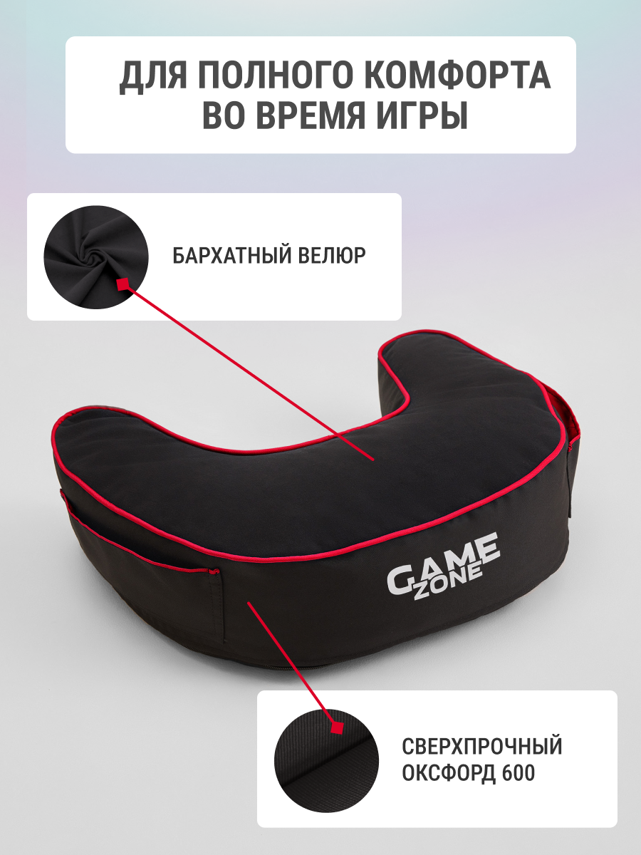 Геймерская подушка MyPuff GAME ZONE, велюр/оксфорд, красно-черная, 50x25 см