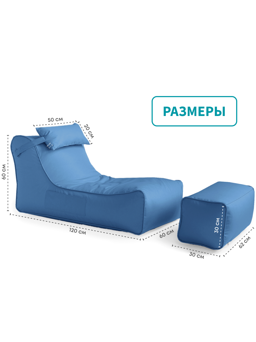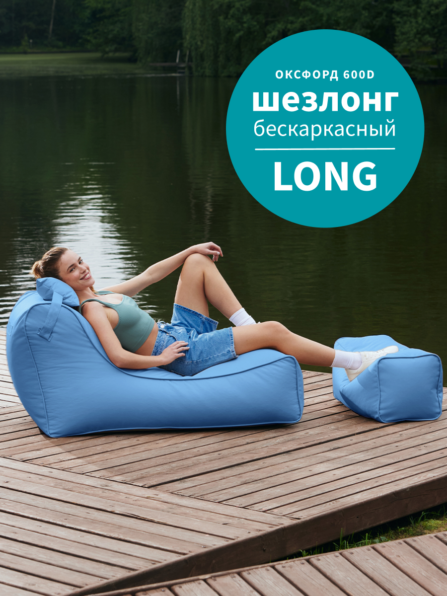 Шезлонг для дачи MyPuff, кресло шезлонг "Лонг", размер XXXXXL, оксфорд, голубой интересное: