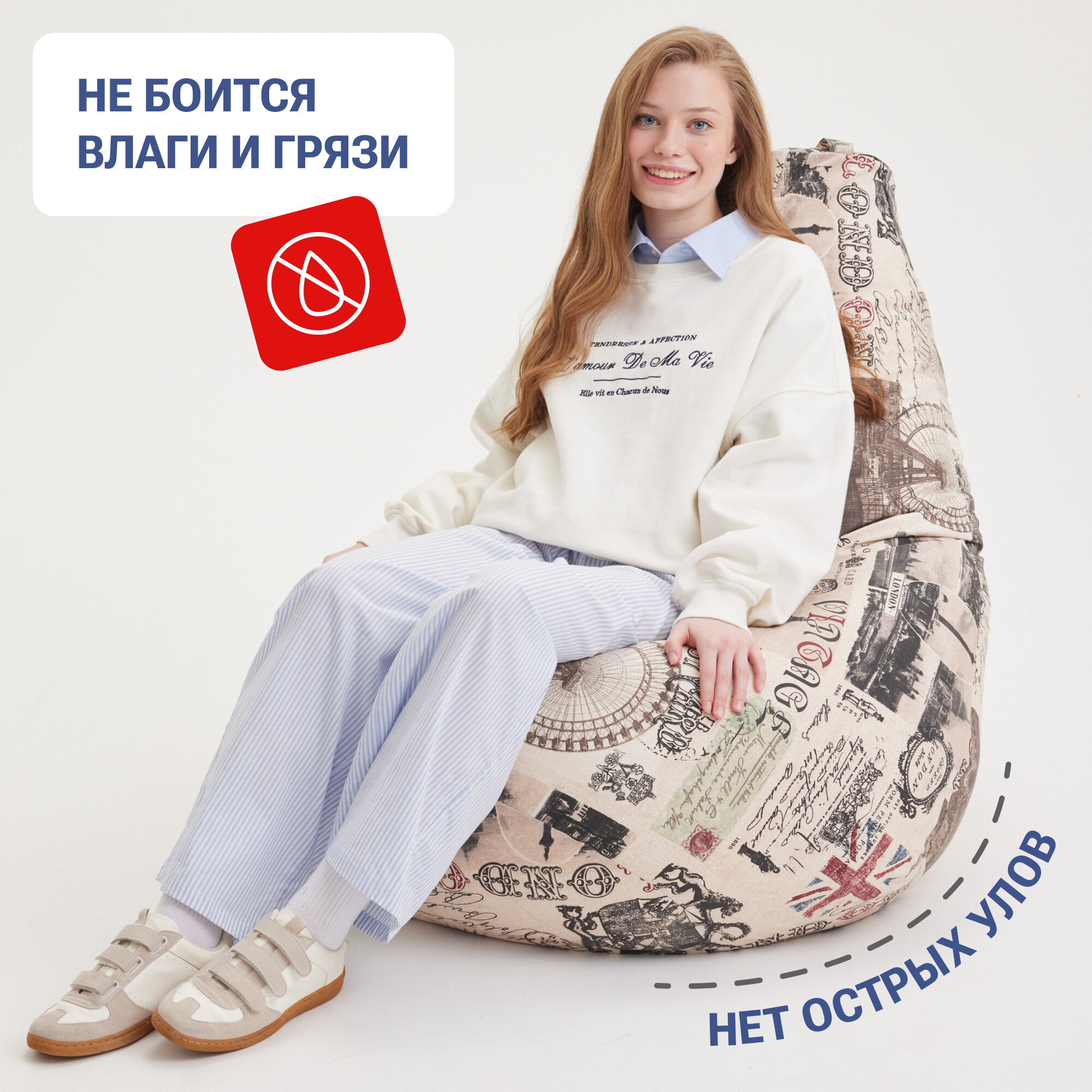 СохранитьКресло мешок Bean Joy кресло груша, размер ХXXL, мебельный хлопок, Лондон интересное: