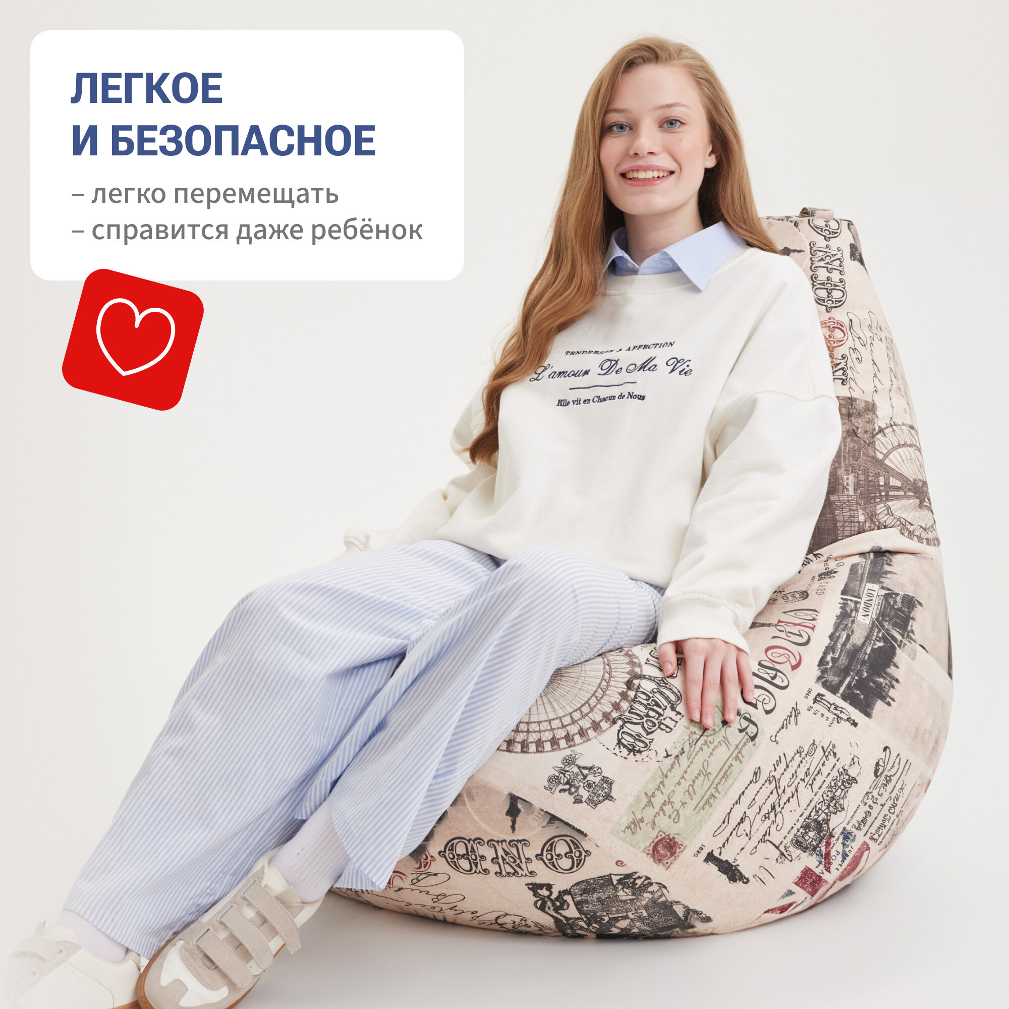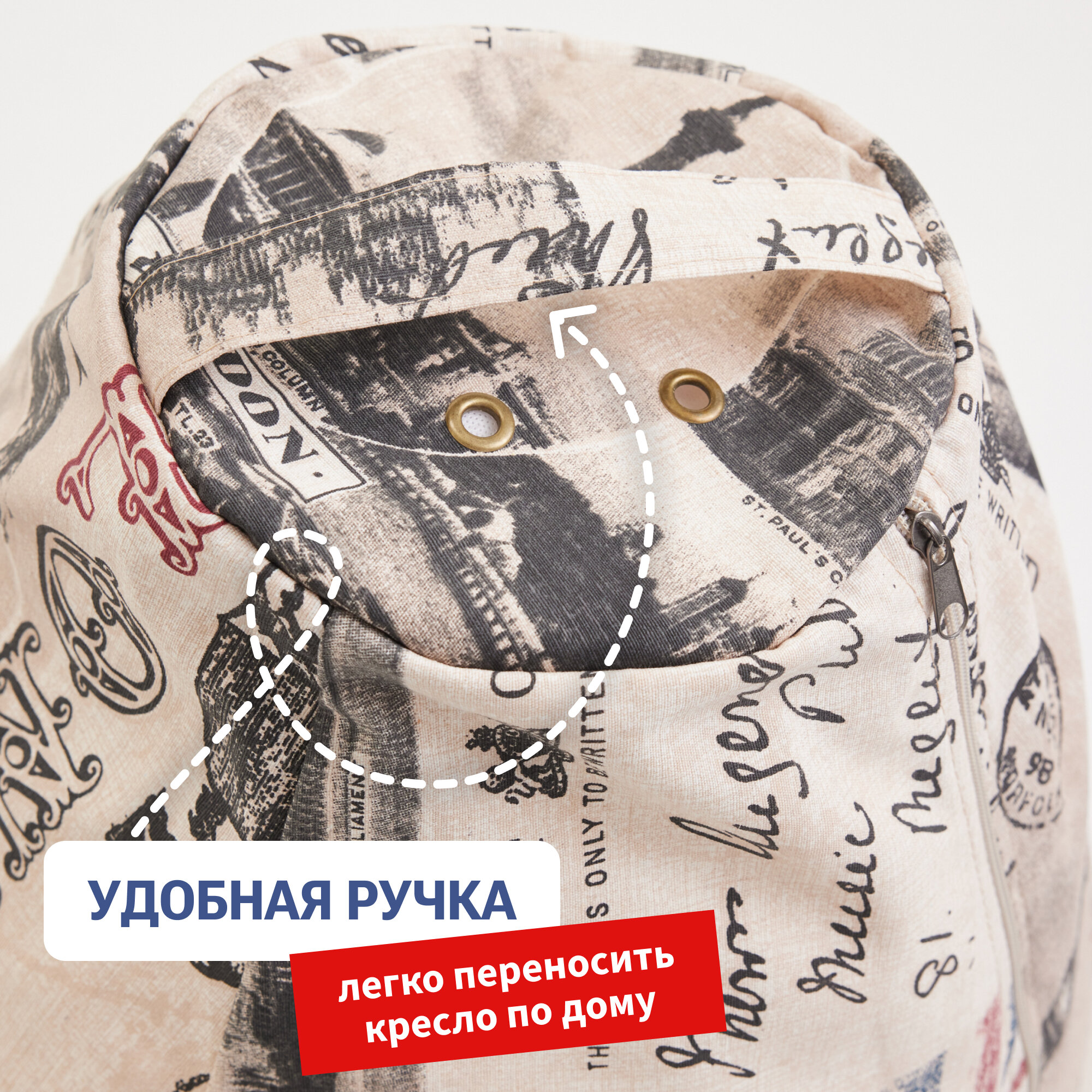 Кресло мешок Bean Joy кресло груша, размер ХXXL, мебельный хлопок, Газета