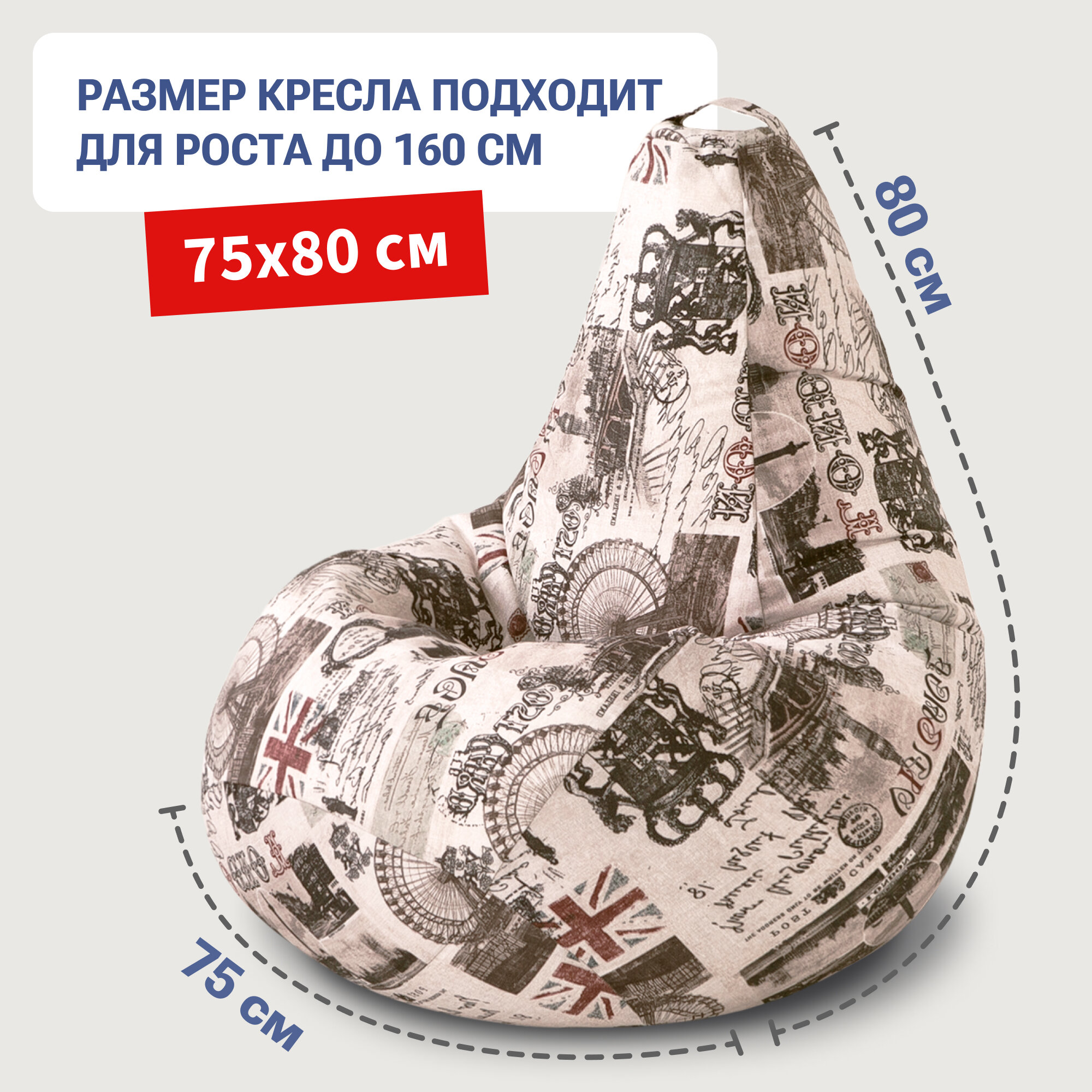 СохранитьКресло мешок Bean Joy кресло груша, размер ХXL, мебельный хлопок, Лондон интересное: