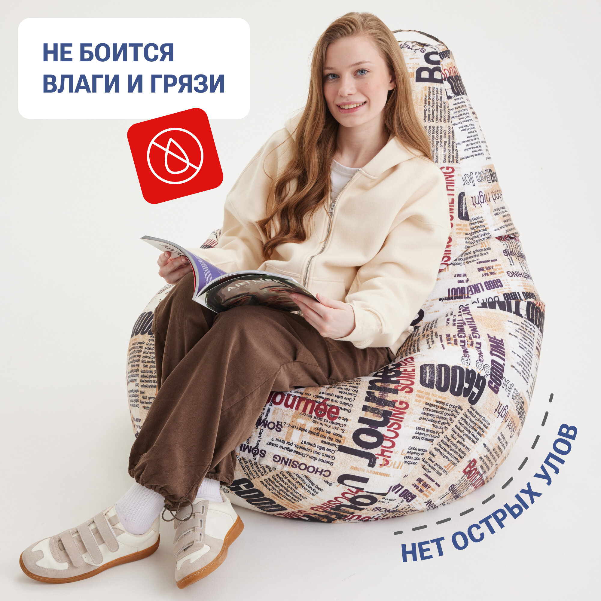 СохранитьКресло мешок Bean Joy кресло груша, размер ХXXL, мебельный хлопок, Газета интересное: