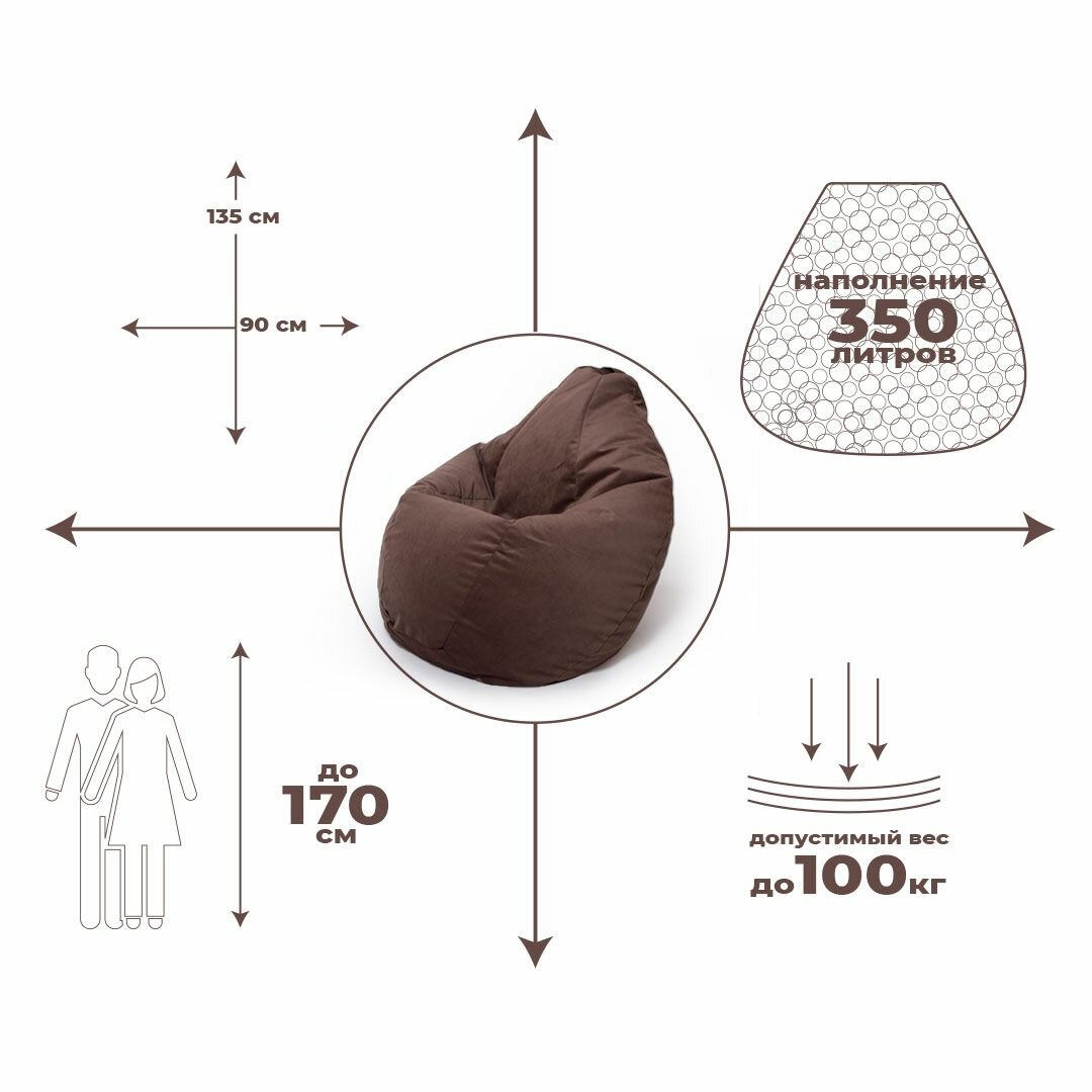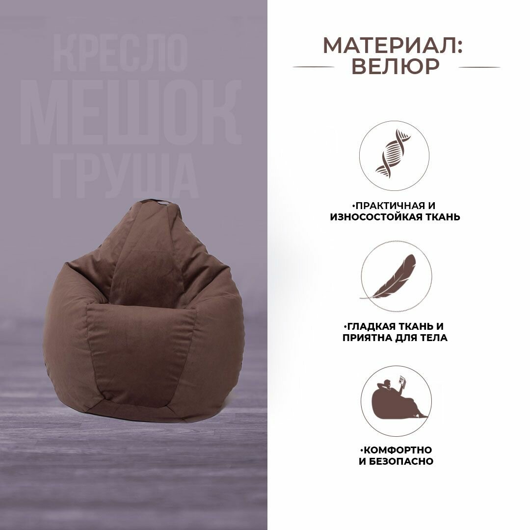 Купить Кресло - мешок Груша, большое 135*90 см, велюр - коричневый