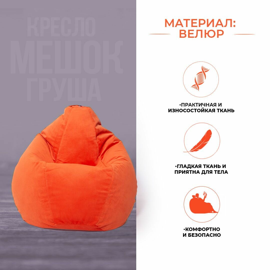 Купить Кресло - мешок Груша, большое 135*90 см, велюр - оранжевый