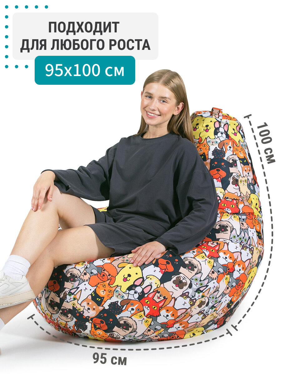 Кресло мешок MyPuff кресло груша, размер XXXXL Комфорт, мебельный хлопок, веселье собачки
