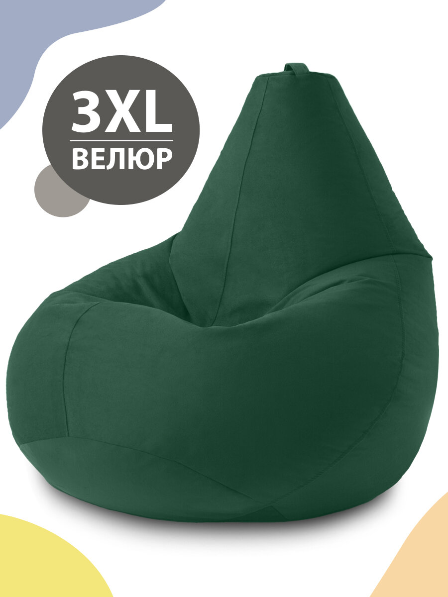 Кресло мешок MyPuff кресло груша, размер ХXХХL Комфорт, мебельный велюр, темный изумруд