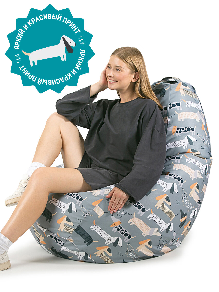Кресло мешок MyPuff кресло груша, размер XXXXL Комфорт, мебельный хлопок, веселье собачки
