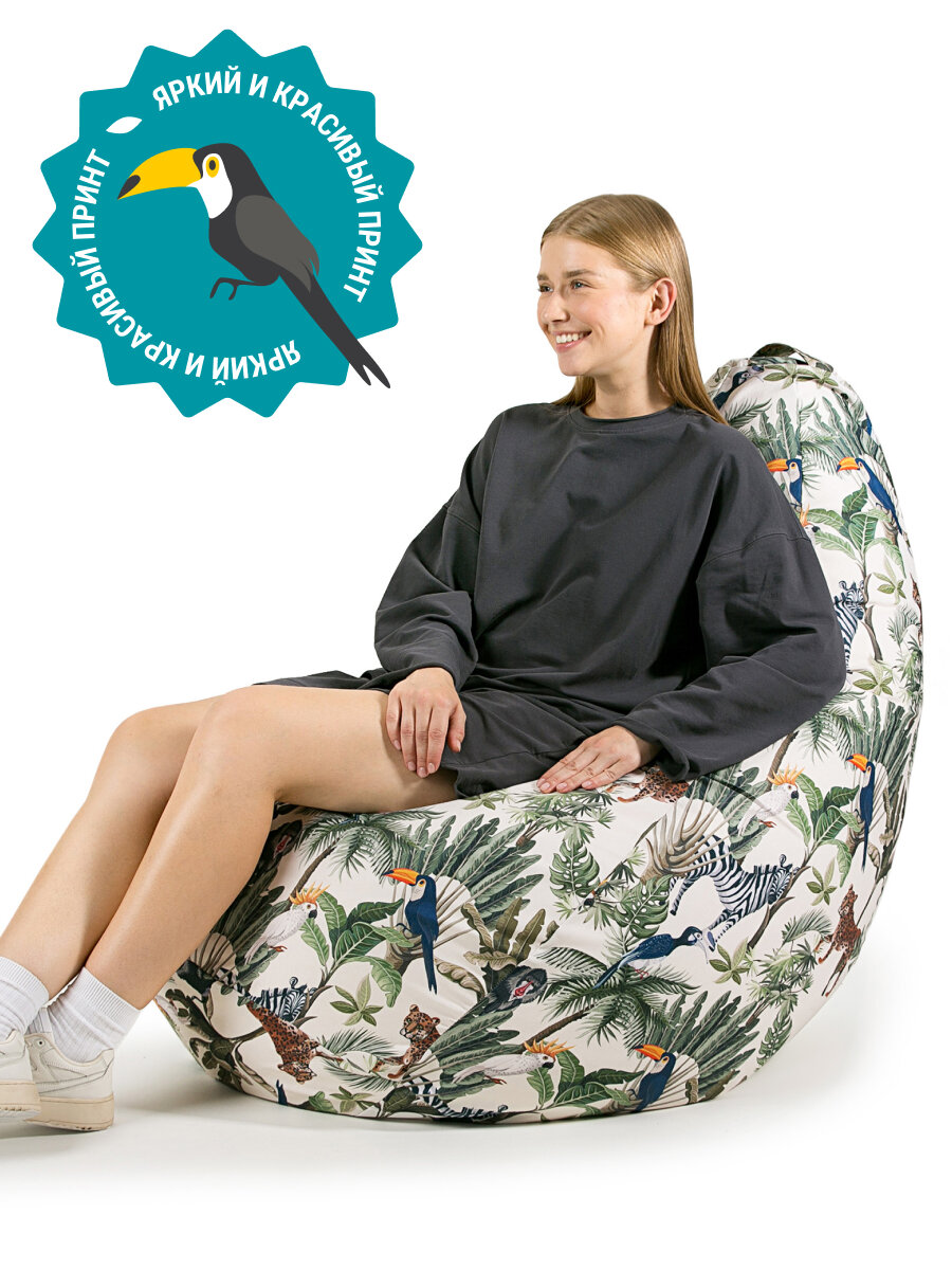 Кресло мешок MyPuff кресло груша, размер XXXL Стандарт, мебельный хлопок, джунгли зовут