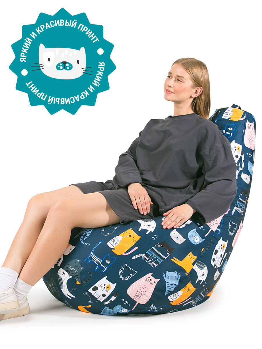 СохранитьКресло мешок MyPuff кресло груша, размер XXXL Стандарт, мебельный хлопок, коты непоседы синие интересное: