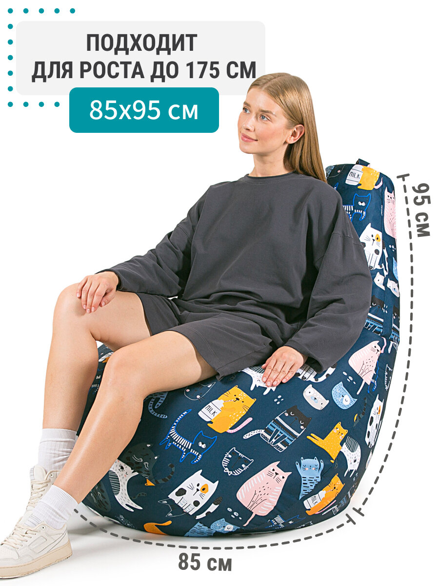 Кресло мешок MyPuff кресло груша, размер ХXL Миди, мебельный хлопок, коты непоседы синие