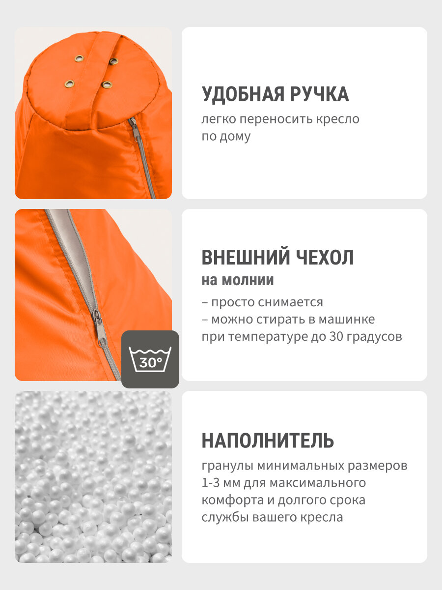 СохранитьКресло мешок MyPuff кресло груша, размер XХХXL Комфорт, оксфорд, апельсин интересное: