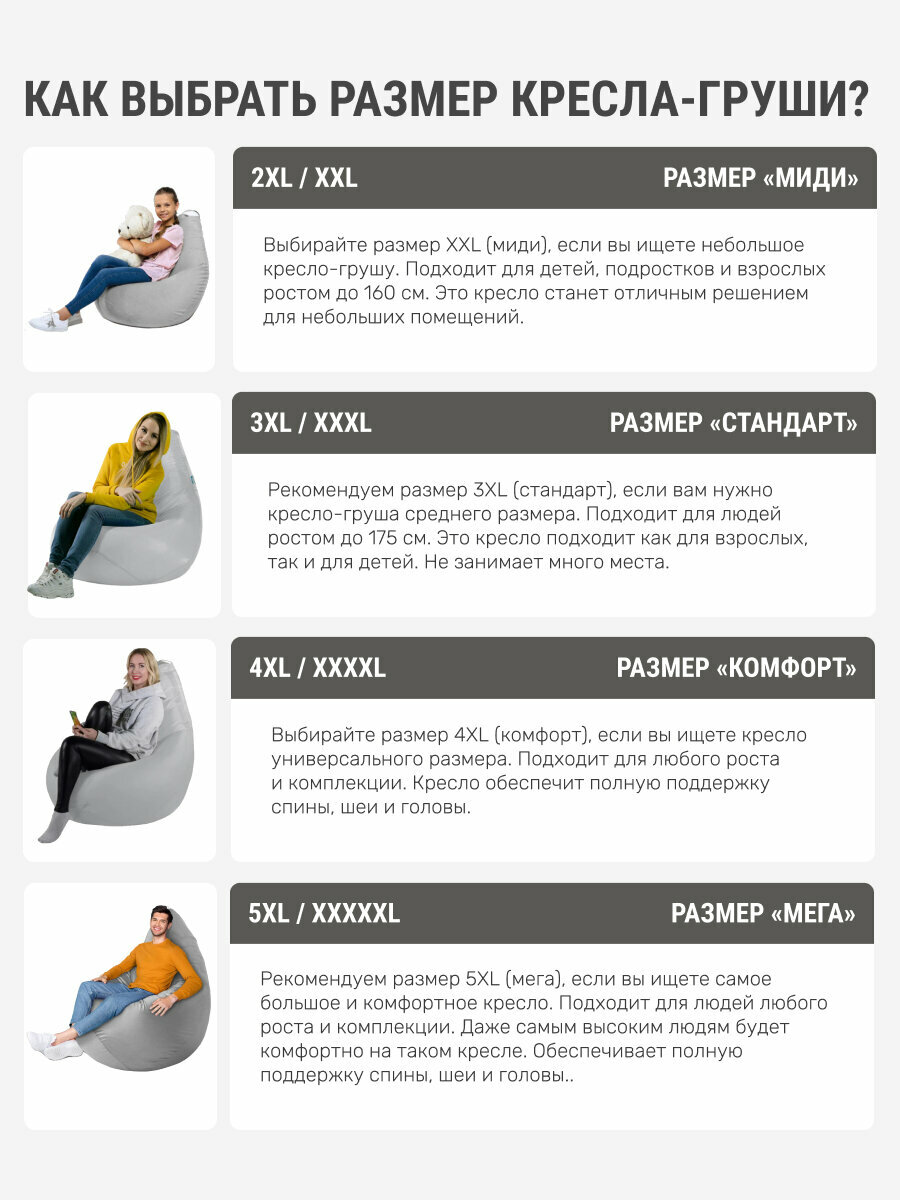 Кресло мешок MyPuff кресло груша, размер XXXXL Комфорт, мебельный хлопок, домашние любимцы