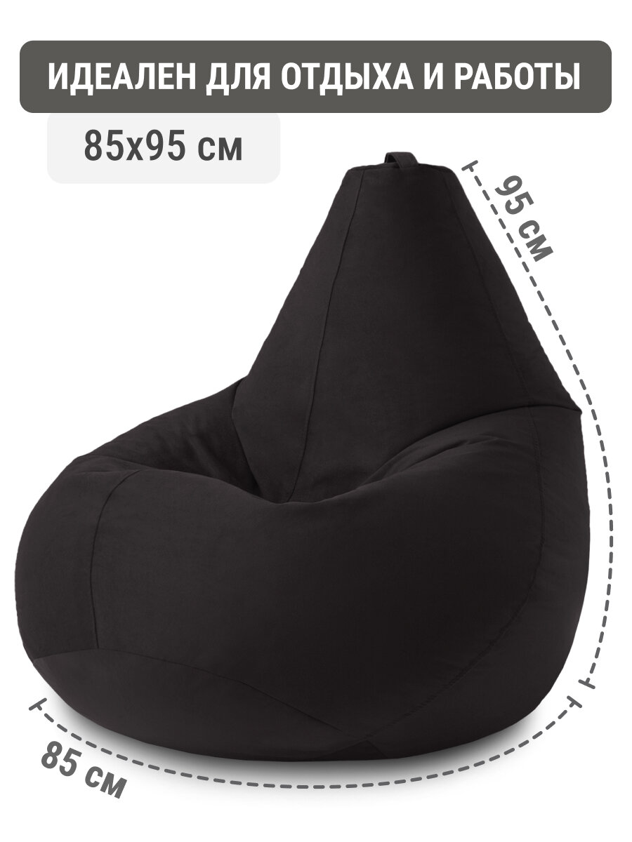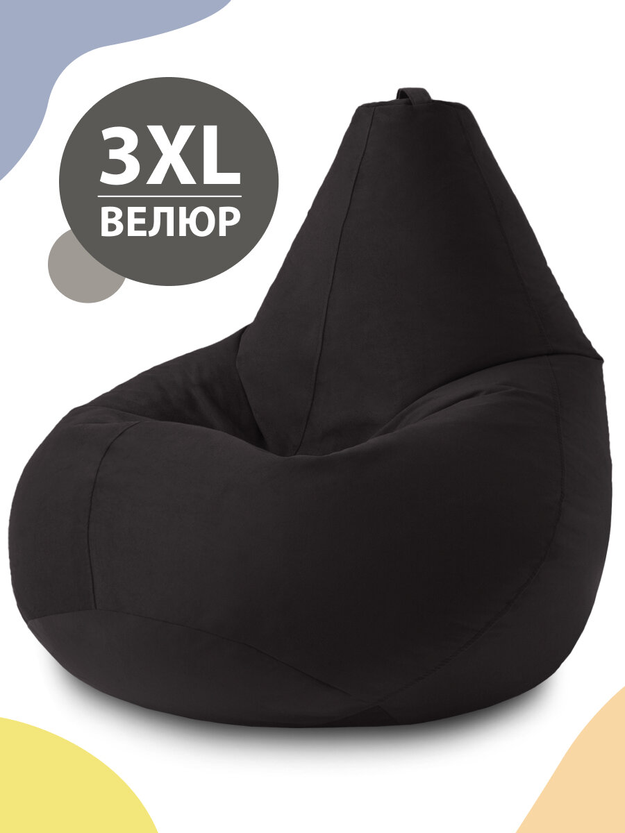 Купить Кресло мешок MyPuff кресло груша, размер XXХL Стандарт, мебельный велюр, черный