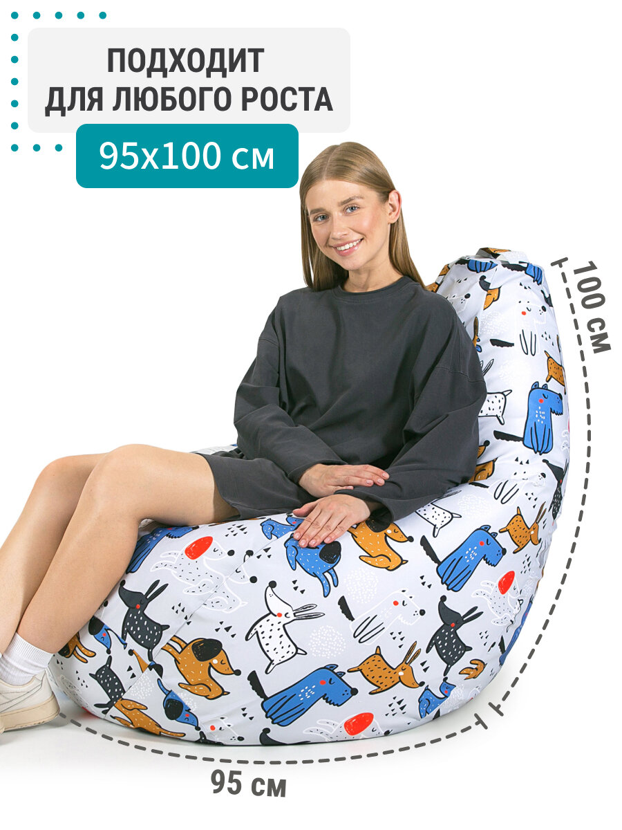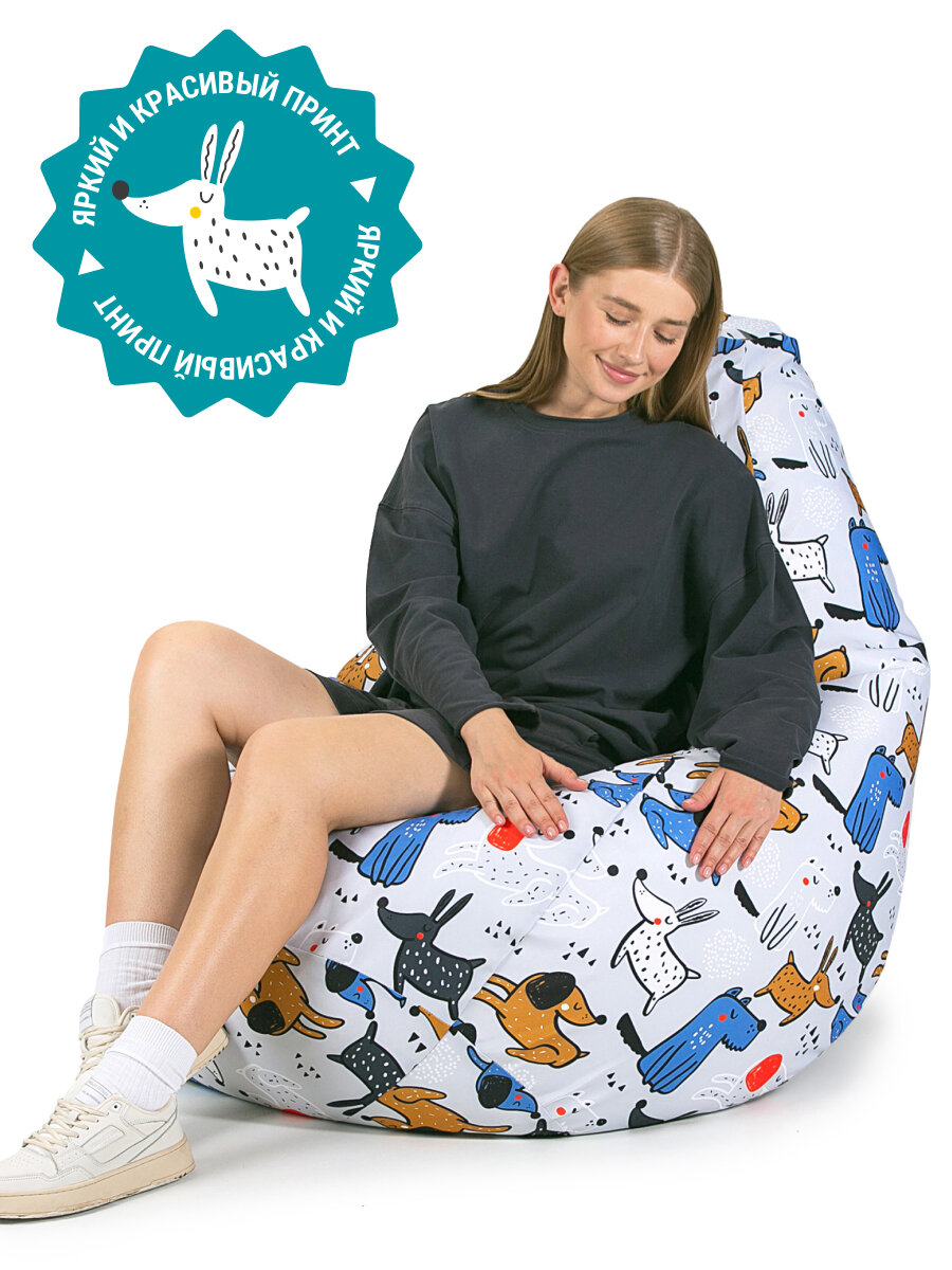 Купить Кресло мешок MyPuff кресло груша, размер XXXXL Комфорт, мебельный хлопок, веселье собачки