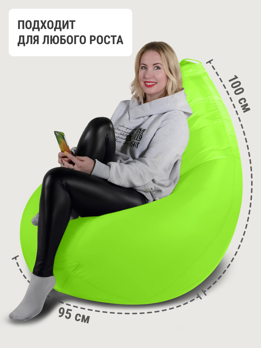 Купить Кресло мешок MyPuff кресло груша, размер XХХXL Комфорт, оксфорд, салатовый неон