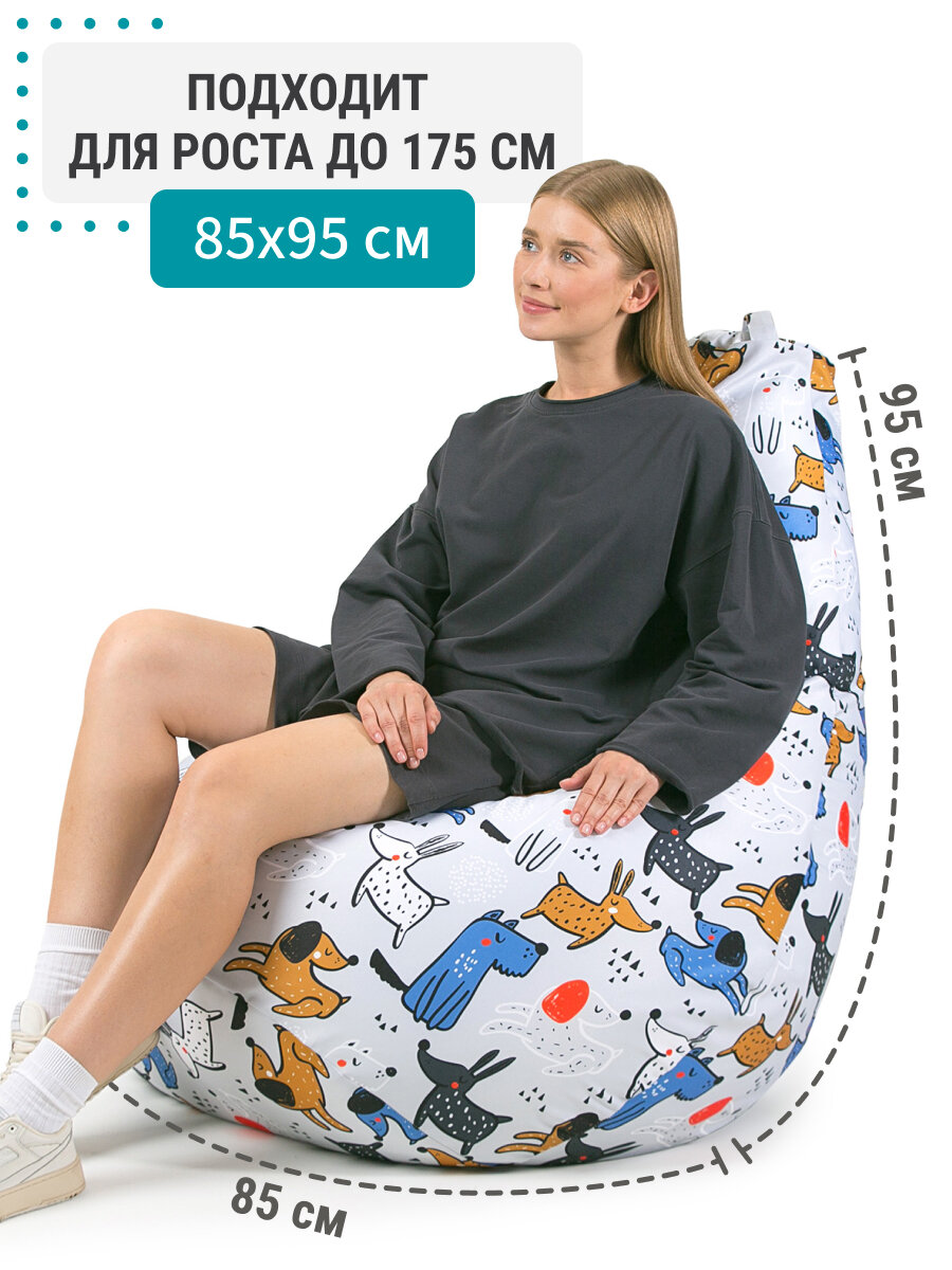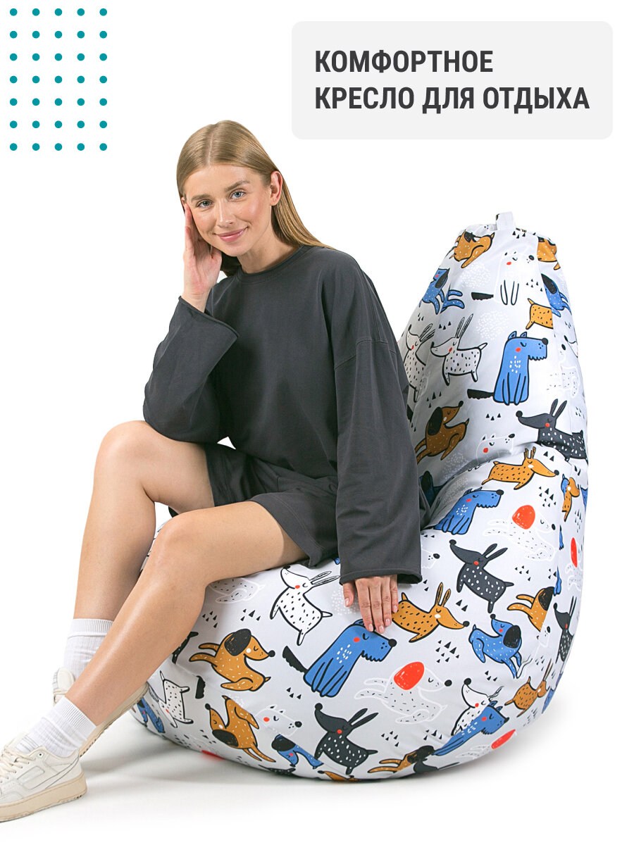 Кресло мешок MyPuff кресло груша, размер XXXXL Комфорт, мебельный хлопок, веселье собачки
