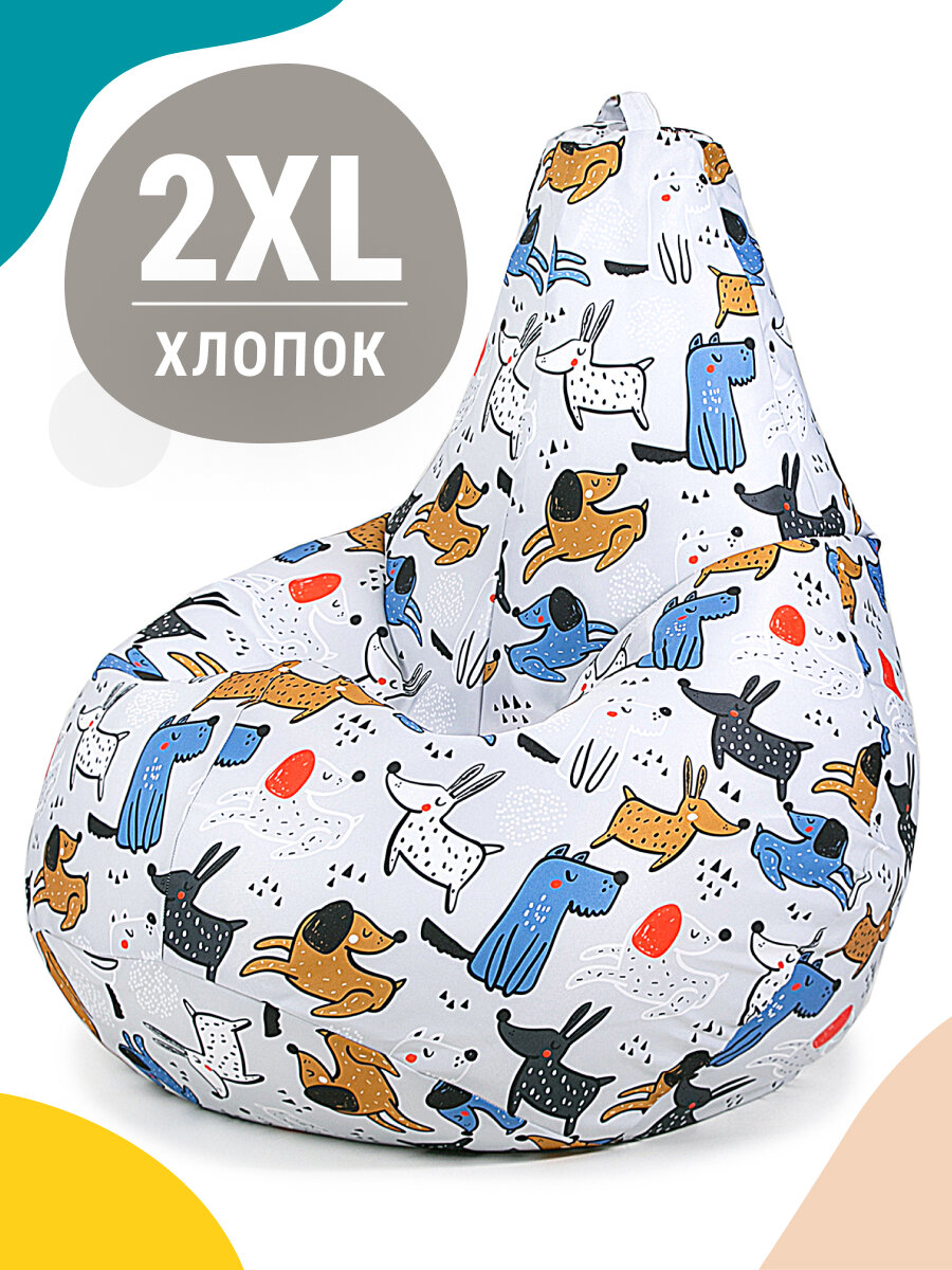 Кресло мешок MyPuff кресло груша, размер XXXXL Комфорт, мебельный хлопок, веселье собачки