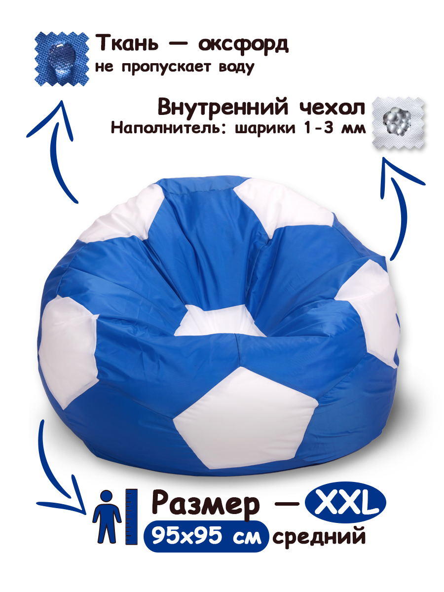Кресло-мешок Пуффбери «Мяч», размер XXL средний, Оксфорд Белый и синий