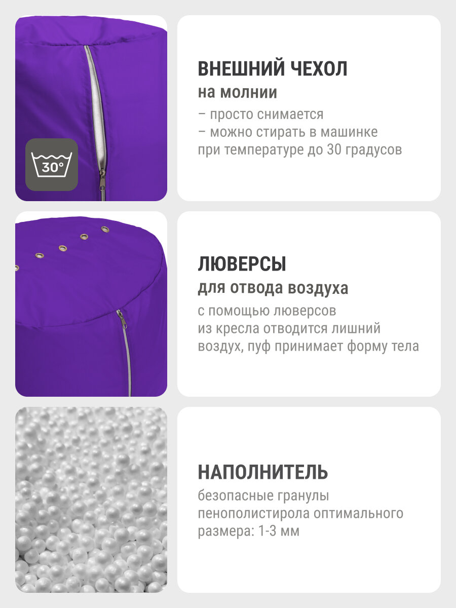 Кресло мешок MyPuff Люкс, пуфик мешок, размер XXХХL, оксфорд, фиолетовый интересное: