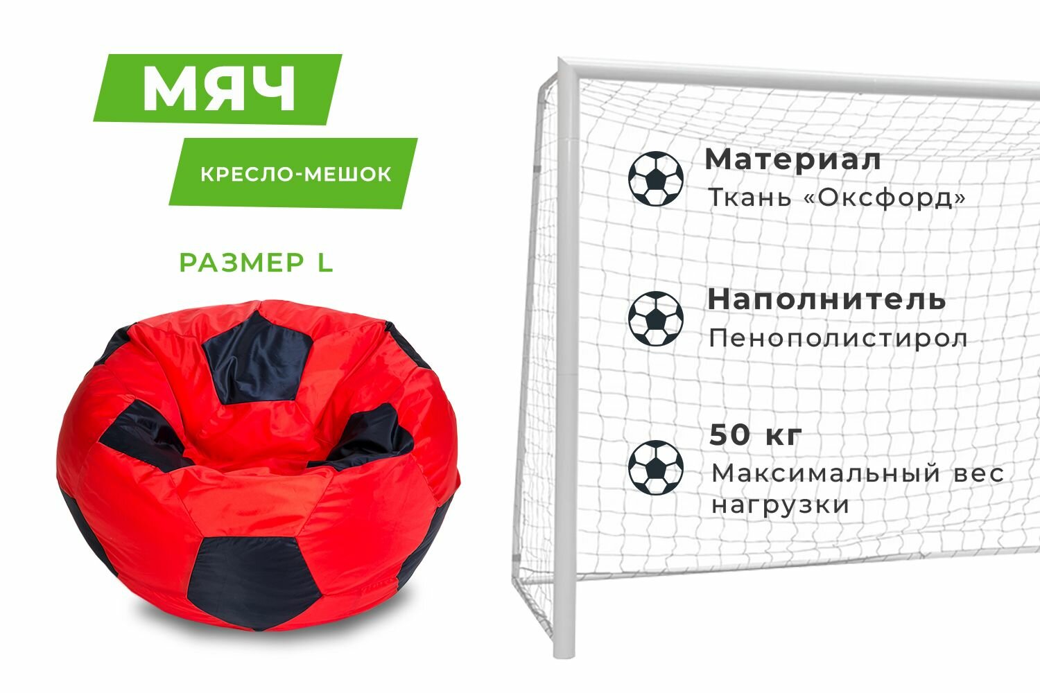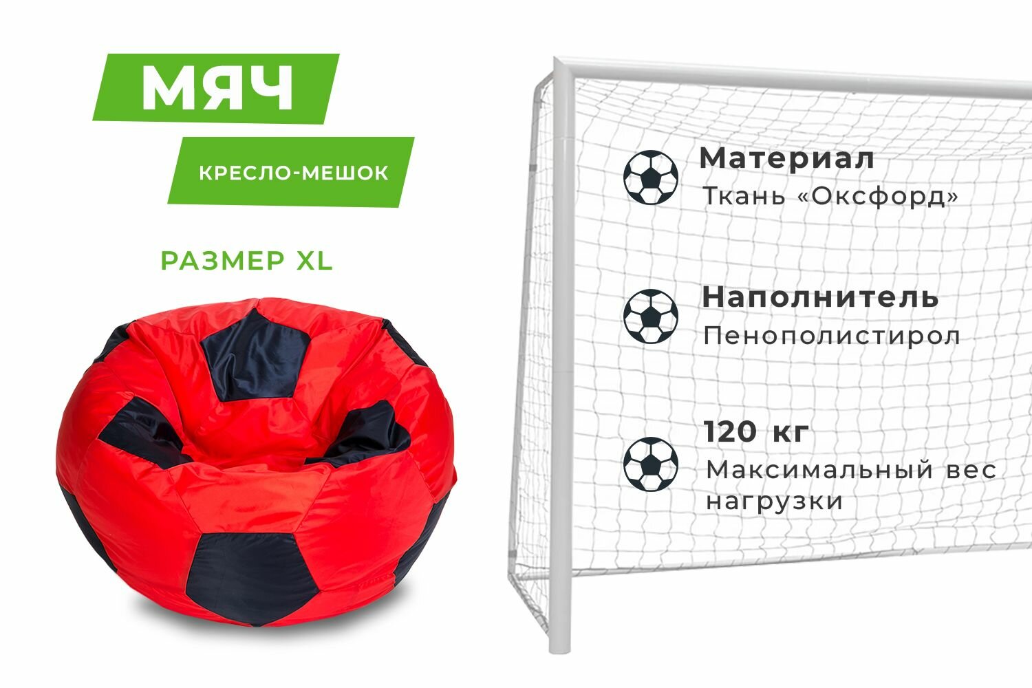 Ниже Вы можете прочитать отзывы на Кресло-мешок Футбольный мяч, малое 70 см, оксфорд водоотталкивающая, красный-черный, ознакомится с подробными характеристиками, посмотреть интересные обзоры и фотографии на Кресло-мешок Футбольный мяч, малое 70 см, оксфорд водоотталкивающая, красный-черный.