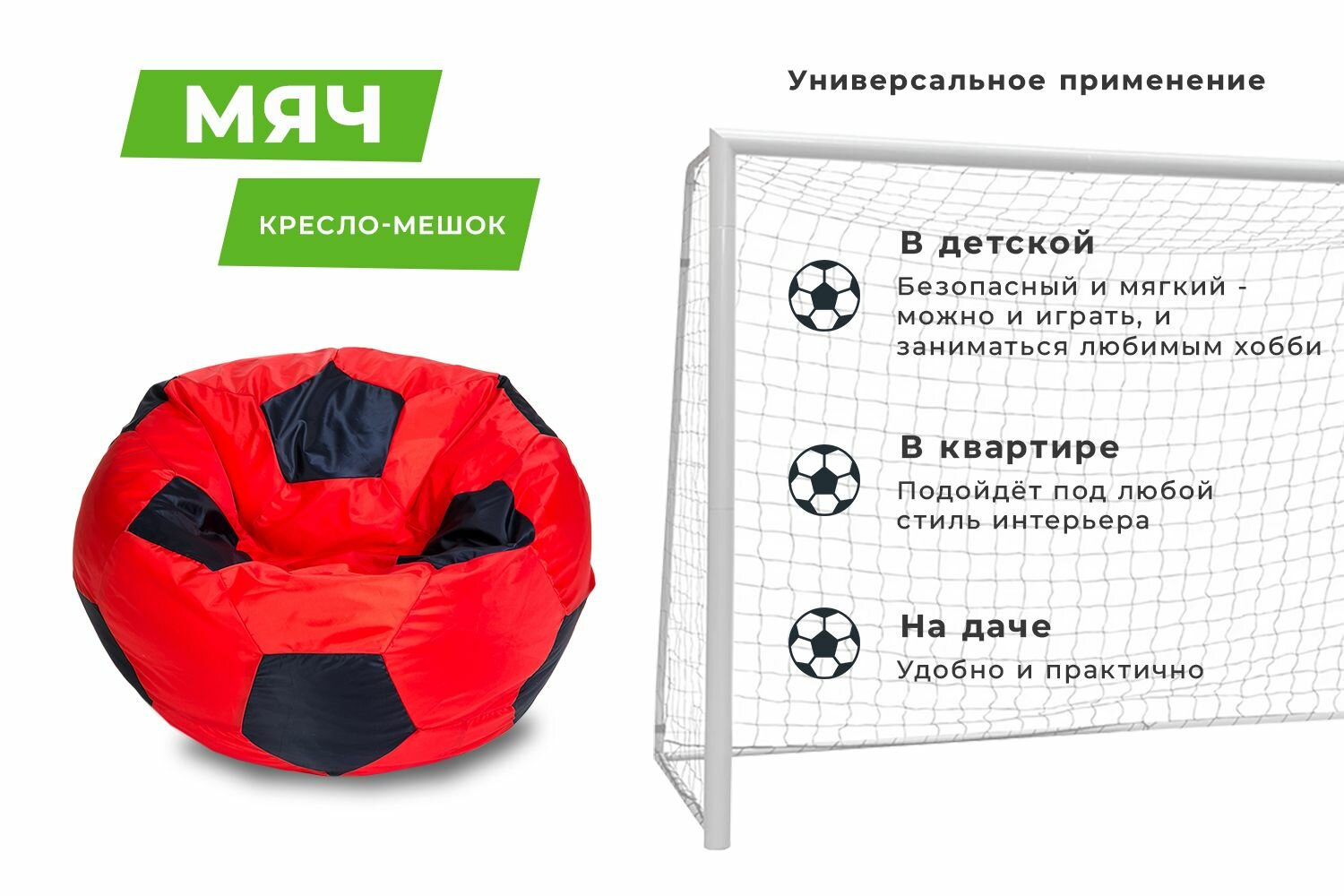 Купить Кресло-мешок Футбольный мяч, малое 70 см, оксфорд водоотталкивающая, красный-черный