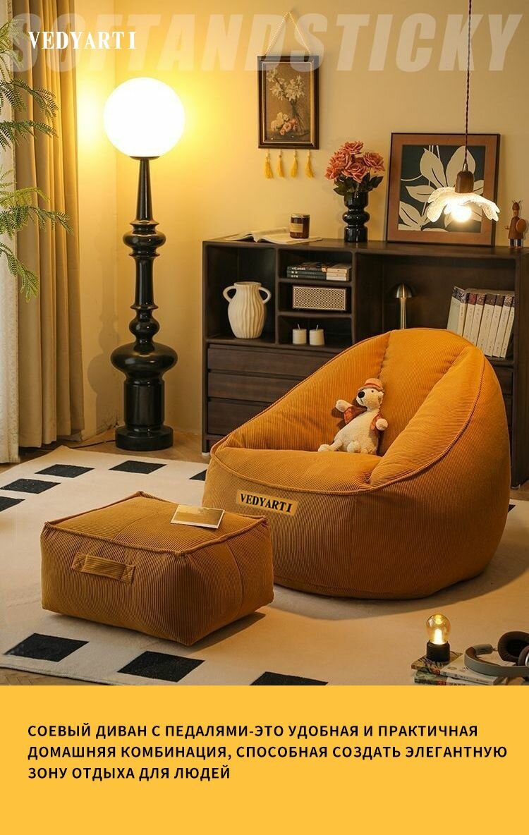 Кресло мешок, EVINDEL, Двухместное сиденье, Для одного человека здесь просторнее, Содержит два мягких низких стула