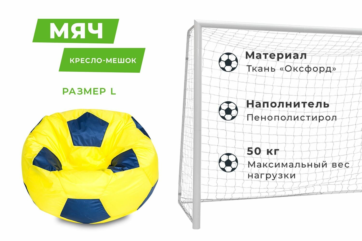 Кресло-мешок Футбольный мяч, малое 70 см, оксфорд водоотталкивающая, желто-синий интересное: