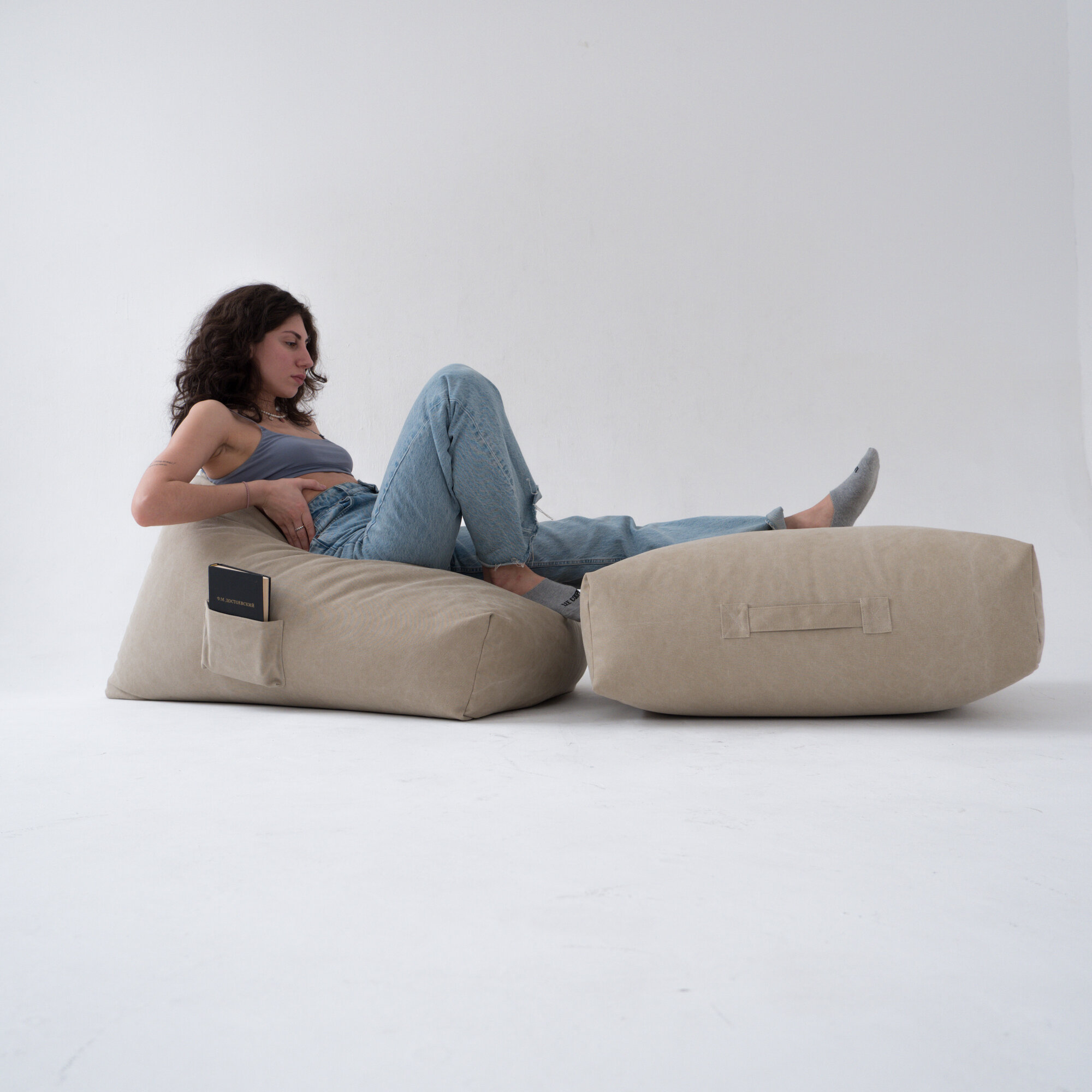 Дизайнерское бескаркасное кресло Натуральный хлопок. Скандинавский стиль. Кресло L. Цвет Песочный мрамор интересное: