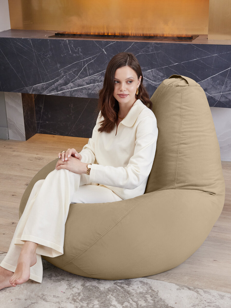 Кресло мешок Laavi Home кресло груша, размер ХXXL, мебельный велюр, бежевый