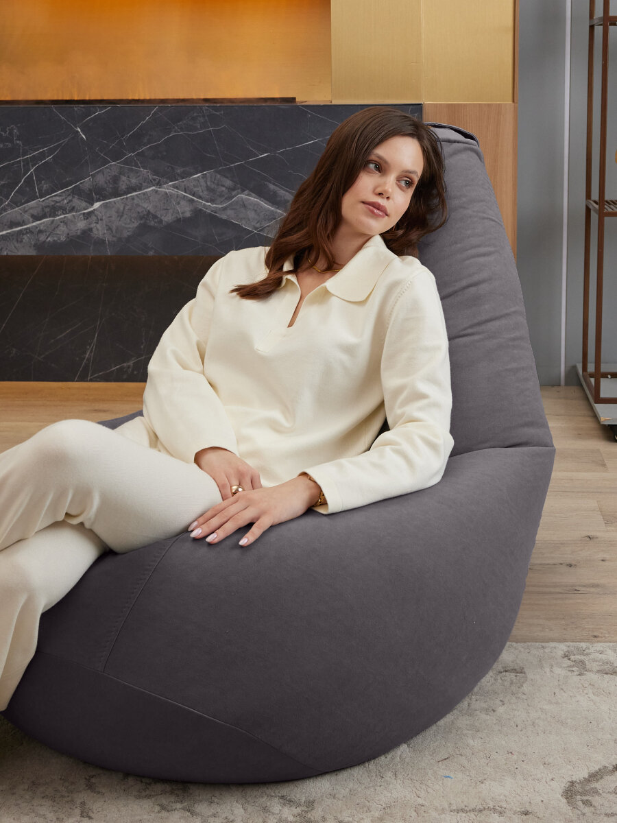 Кресло мешок Laavi Home кресло груша, размер ХXL, мебельный велюр, антрацит