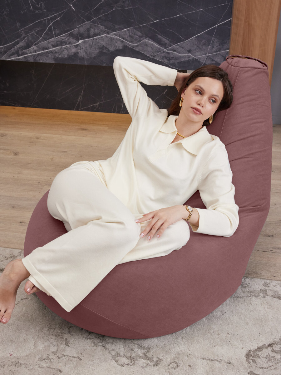Кресло мешок Laavi Home кресло груша, размер ХXXXL, мебельный велюр, пудра