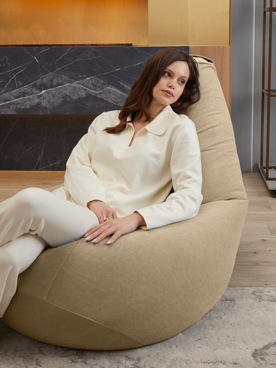 Кресло мешок Laavi Home кресло груша, размер ХXL, мебельный велюр, бежевый